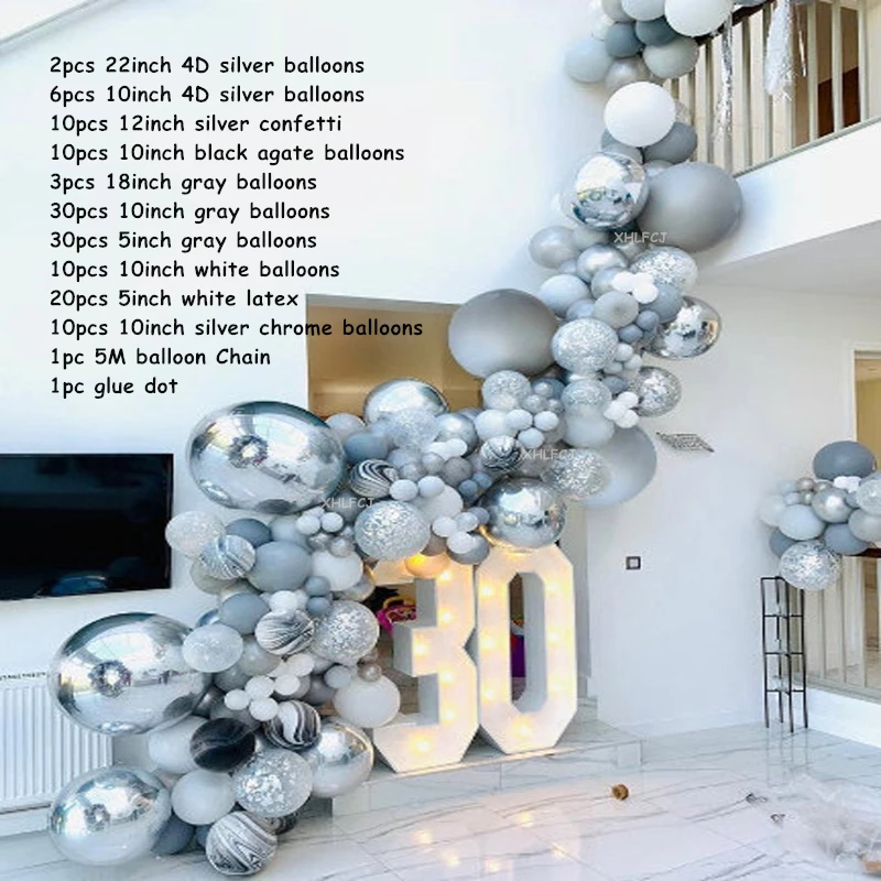 133 шт. черные воздушные шары Цвета Агата, гирлянда, арочный комплект, бело-серый латексный серебристый 4D воздушный шар "Конфетти", свадебное украшение для дня рождения ребенка, Globos