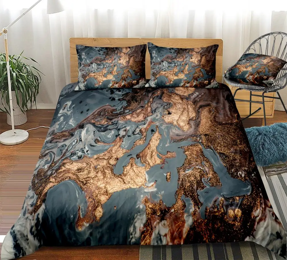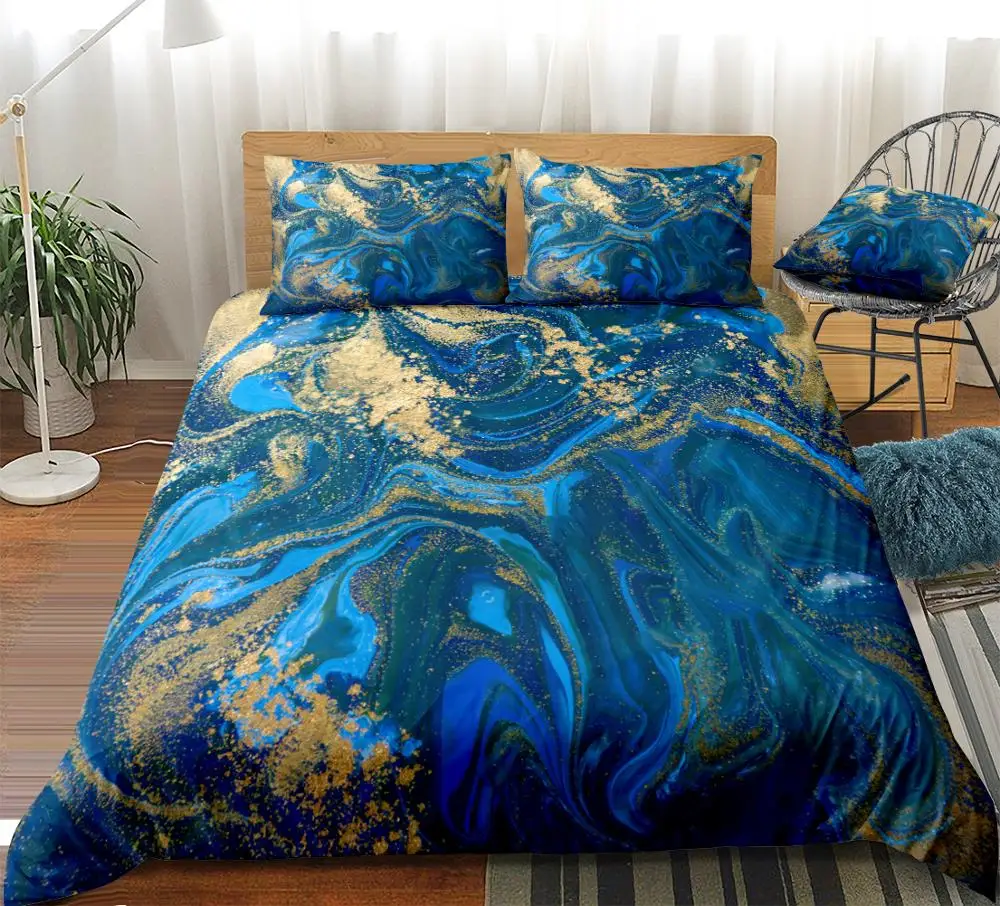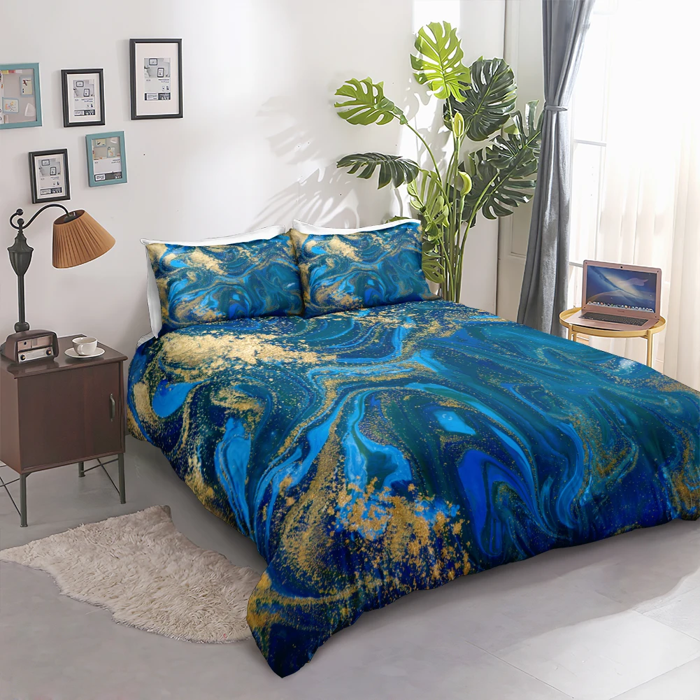 Мраморный Комплект постельного белья, синий комплект с пододеяльником, мраморный абстрактный Комплект постельного белья для мальчиков и девочек