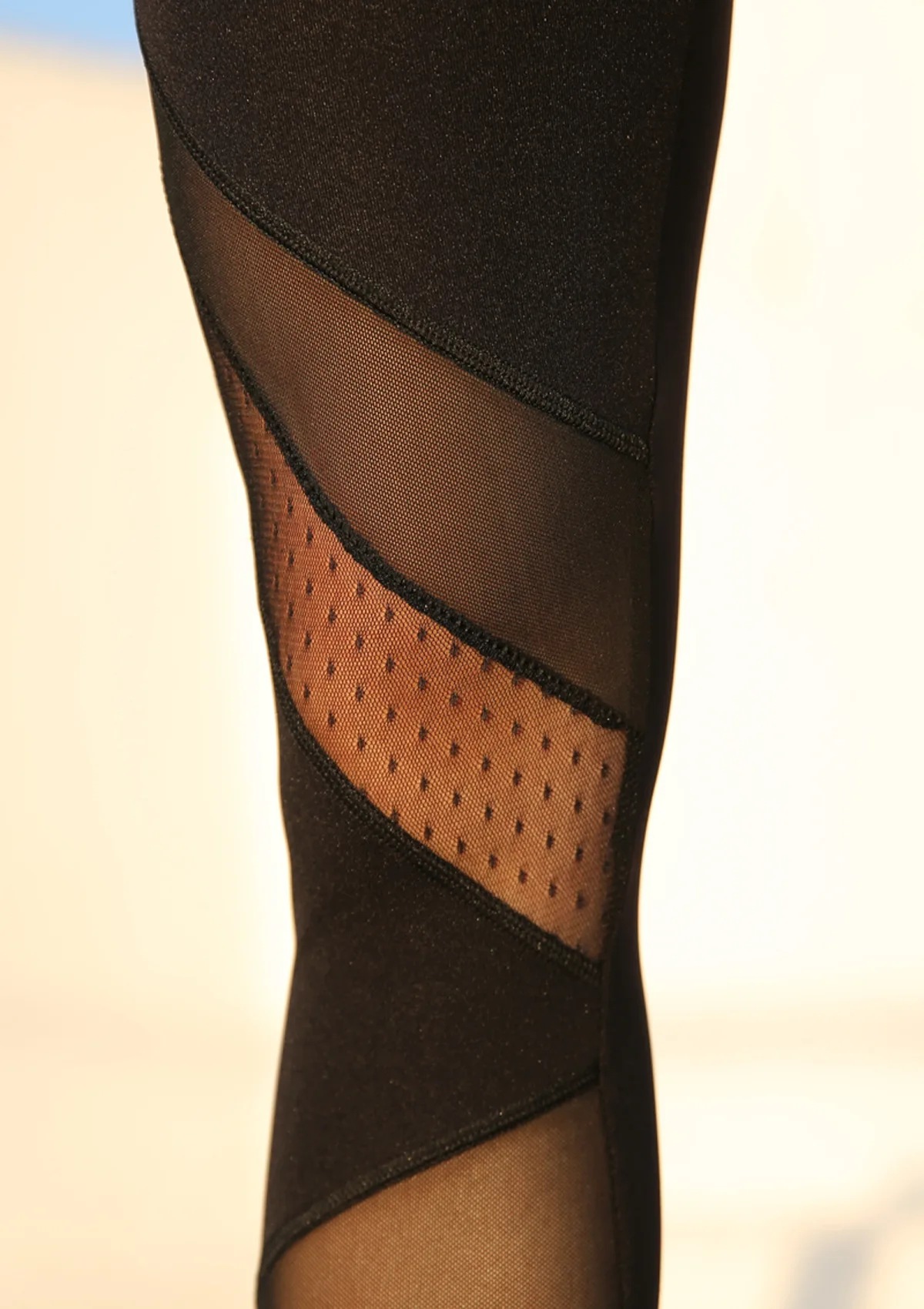 Леггинсы женские спортивные, черные, с сетчатыми вставками, в готич...