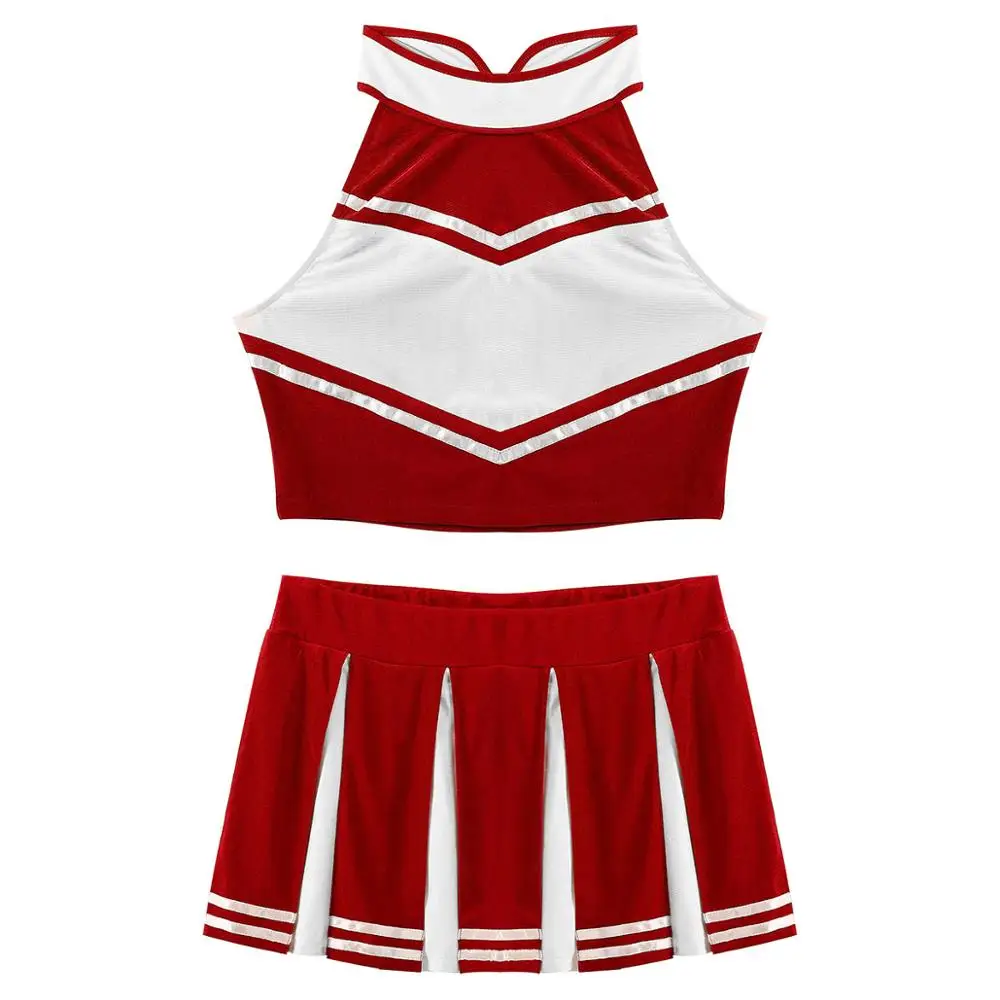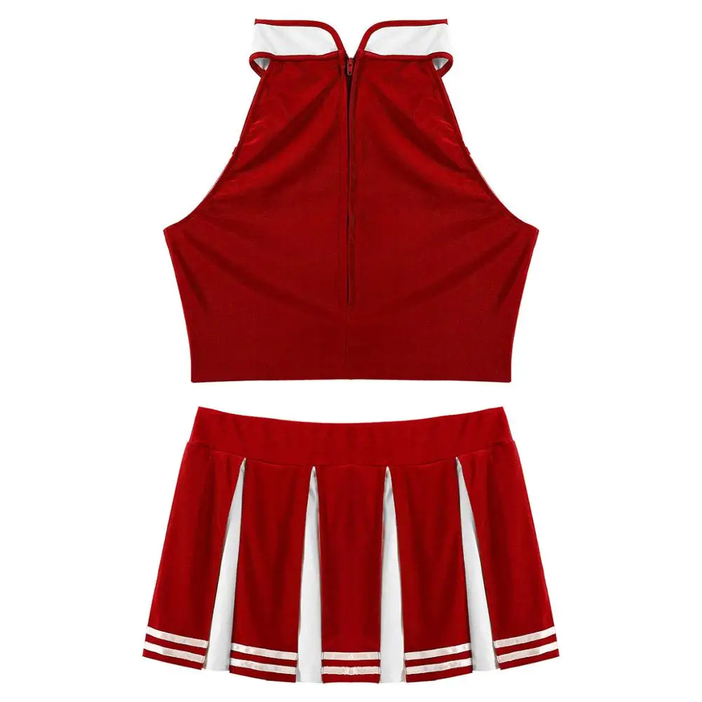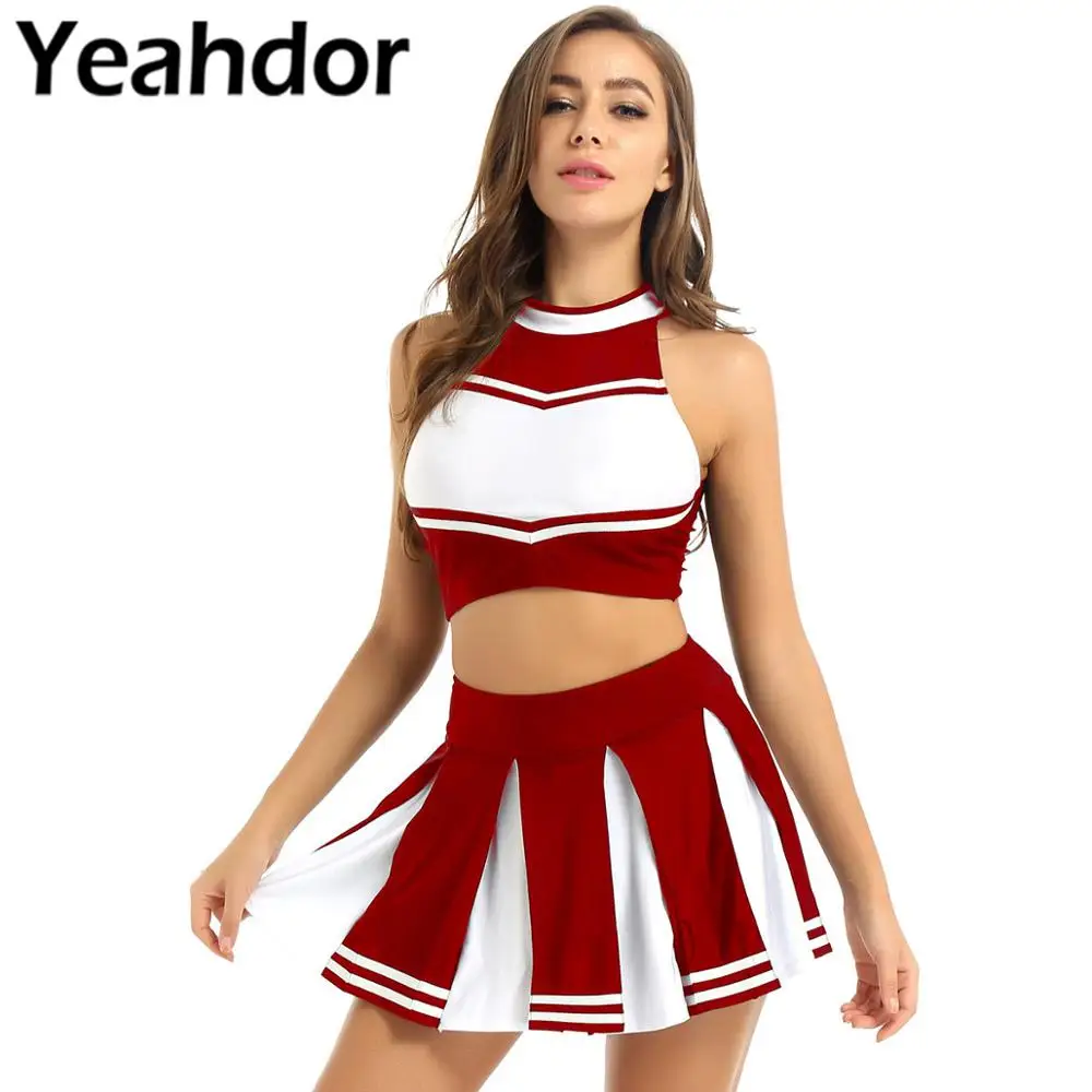 Комплект для косплея для взрослых женщин, комплект из 2 предметов, кроп-топ без рукавов и плиссированная мини-юбка, униформа для чирлидинга