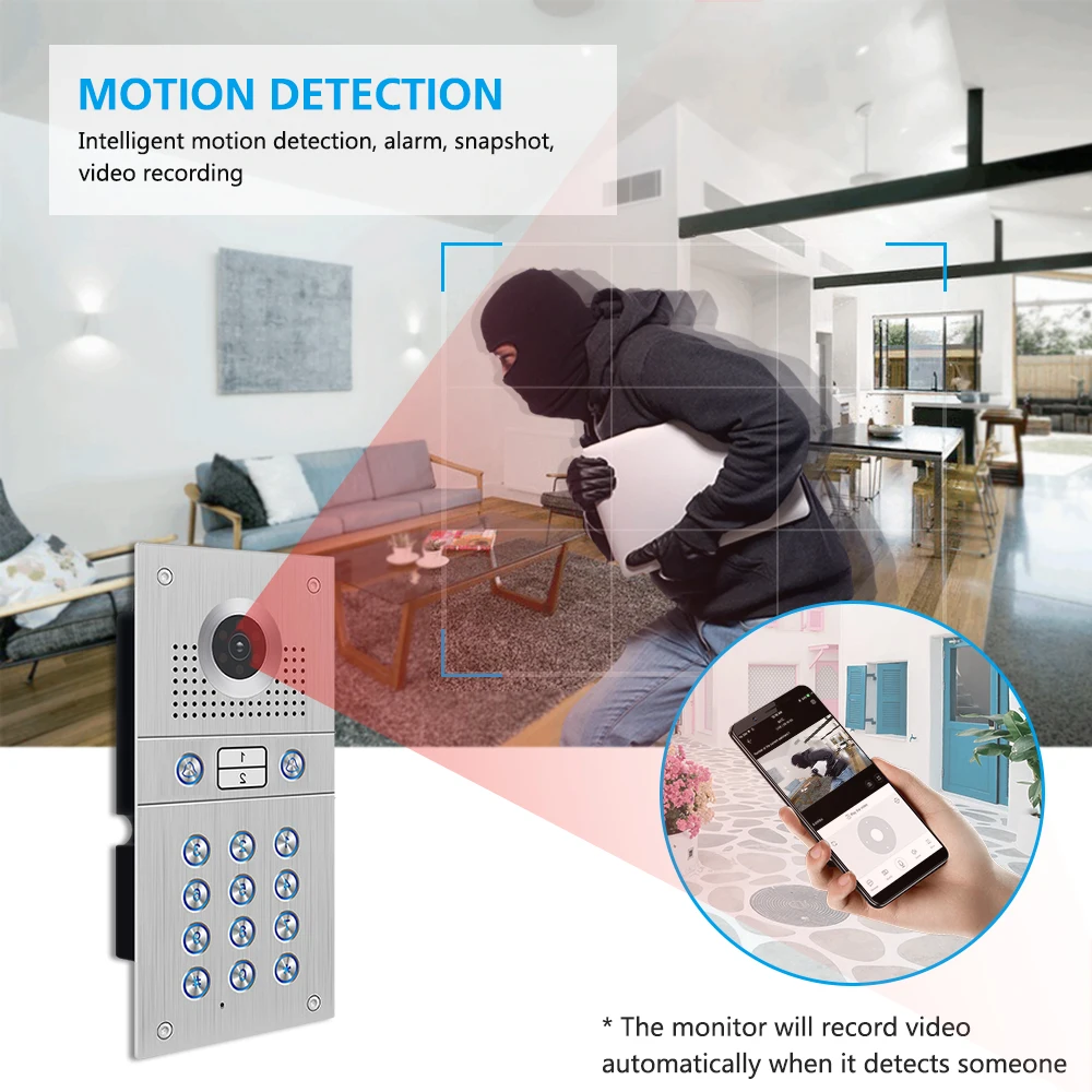 Умный видеодомофон Jeatone с Wi-Fi, домофон с клавиатурой и кодомRFID-картойприложением для разблокировки, обнаружения движения, для двух устройств в квартире