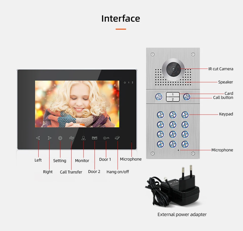 ♦Камера 960P♦125 кГц RFID карта + код разблокировки клавиатуры♦ИК-светодиоды для ночного видения♦Регулируемый громкость внутренней связи♦Двусторонний Интерком♦ИК-датчик, Автоматическое включение/выключение ИК-светодиодов♦Простая установка и установка DIY♦Антиантивандальная панель из алюминиевого сплава♦IP65 к атмосферным воздействиям