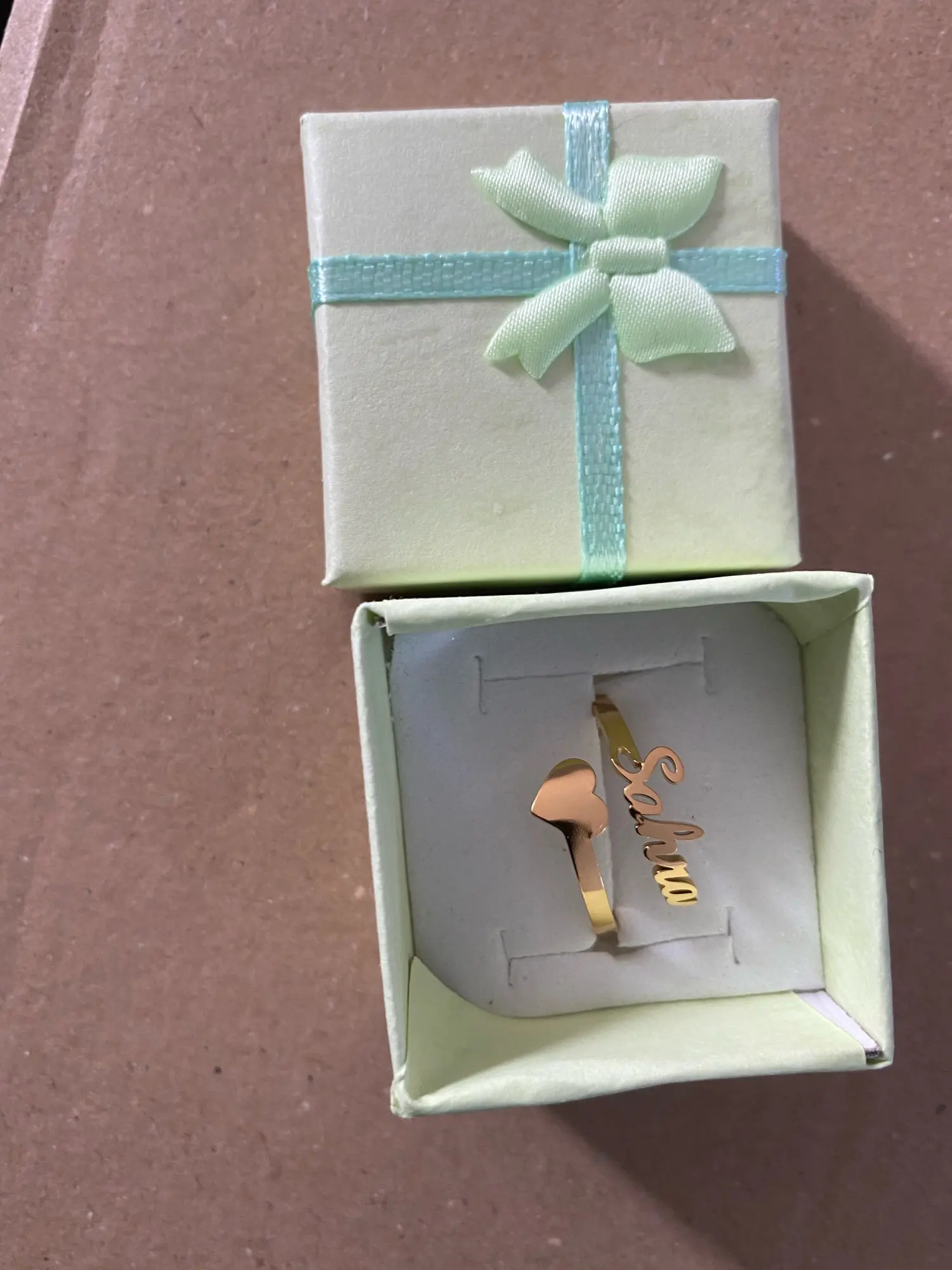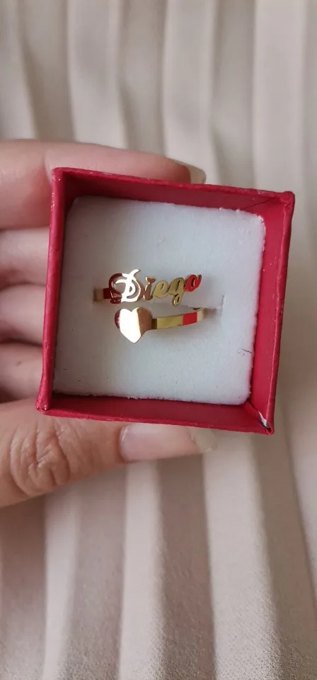Я только что получил его, он очень красивый и соответствует тому, что я просил с точки зрения письма, за исключением того, что имя было плохо орфографировано, так как письмо отсутствует. Я только что связался с продавцом и жду его ответа. Я вернусь к вам, чтобы держать вас в курсе. Я даже хотел сказать, что кольцо было доставлено в красивой маленькой подарочной коробке.