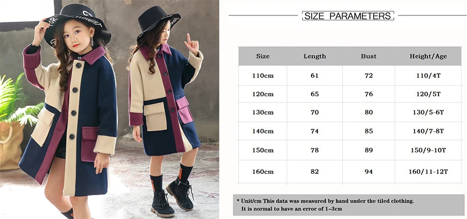 Изделие: контрастная шерстяная курткаПодходящий Пол: Для ДевочекСтиль: КорейскийПодходит для возраста: среднего и большого детей (более 4 лет, более 110 см)Подходящий сезон: весна, осень, зимаТип воротника: отворотДлина рукава: длинный рукавНазвание ткани: шерстяная тканьСостав основной ткани: состав основной хлопковой ткани 85 (%)Состав подкладки: полиэфирное волокно (полиэстер) состав подкладки 85 (%)Закрытый стиль: однобортныйТип подкладки: хлопковая подкладкаДлина рубашки: СредняяЦвет: пальто контрастных цветов, пальто с розовым бантом, пальто с бантом цвета хакиПодходит для роста: 110 см, 120 см, 130 см, 140 см, 150 см, 160 см.Примечание:1. Правильный размер выбирается в соответствии с ростом вашего ребенка.2. Обратите внимание, что указанные измерения были сделаны вручную. Возможны незначительные погрешности в 1-3 см.3. Из-за различных мониторов и условий освещения цвета могут немного отличаться от приведенных фотографий.4. Пожалуйста, подумайте о покупке размера, потому что они растут так быстро в этом возрасте.5. Если ваш ребенок выше среднего, учитывайте больший размер из-за плотного прилегания.6. Если вы считаете, что этикетка поцарапает нежную кожу вашего ребенка, вы можете отрезать этикетку ножницами.7,1 см = 0,39 дюйма, 1 дюйм = 2,54 см.