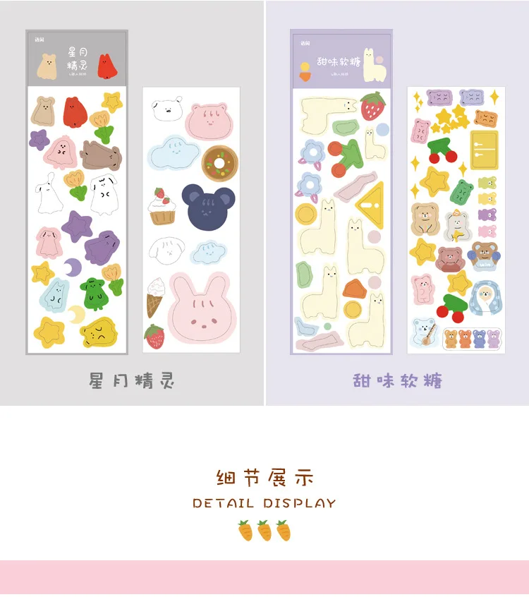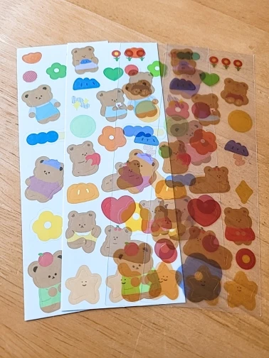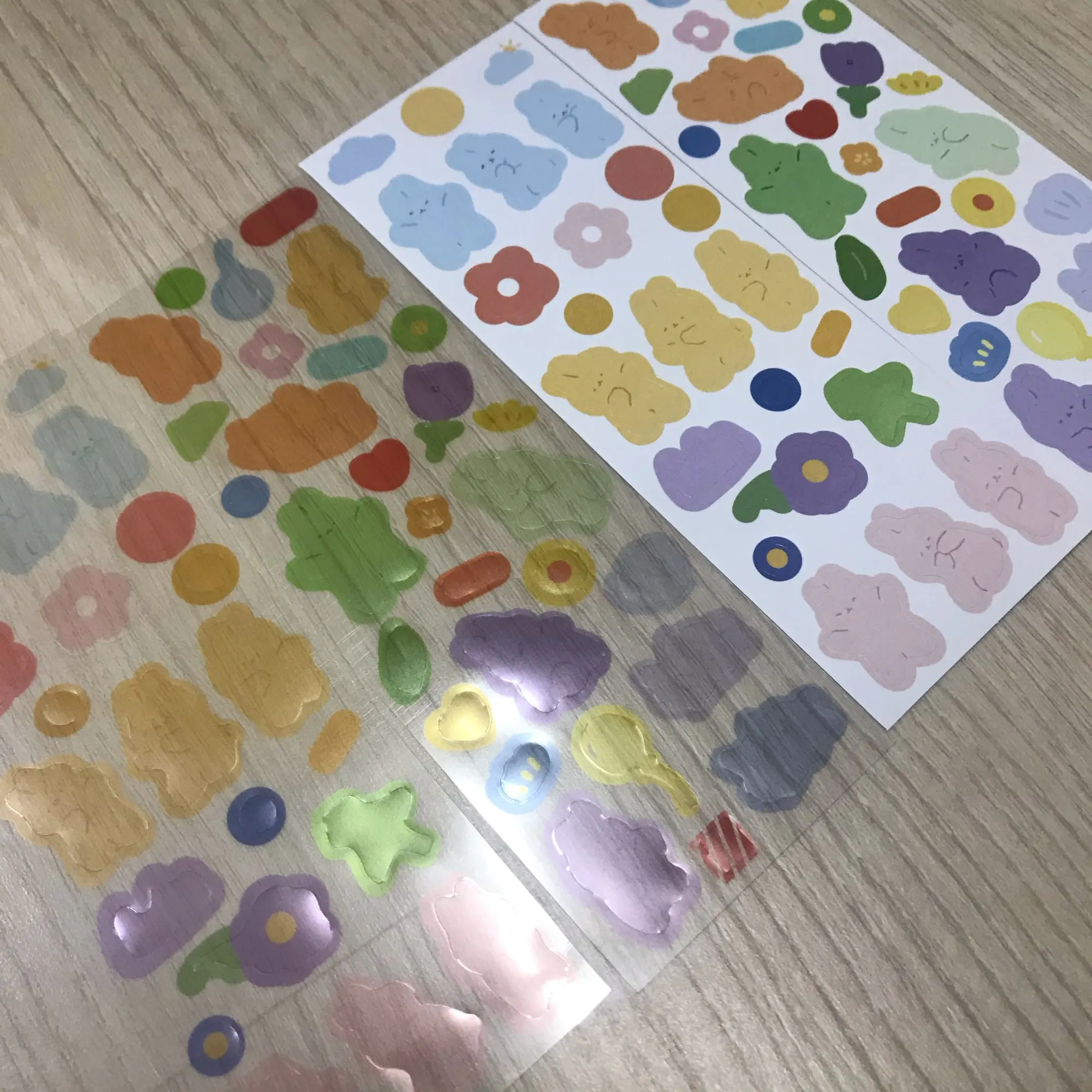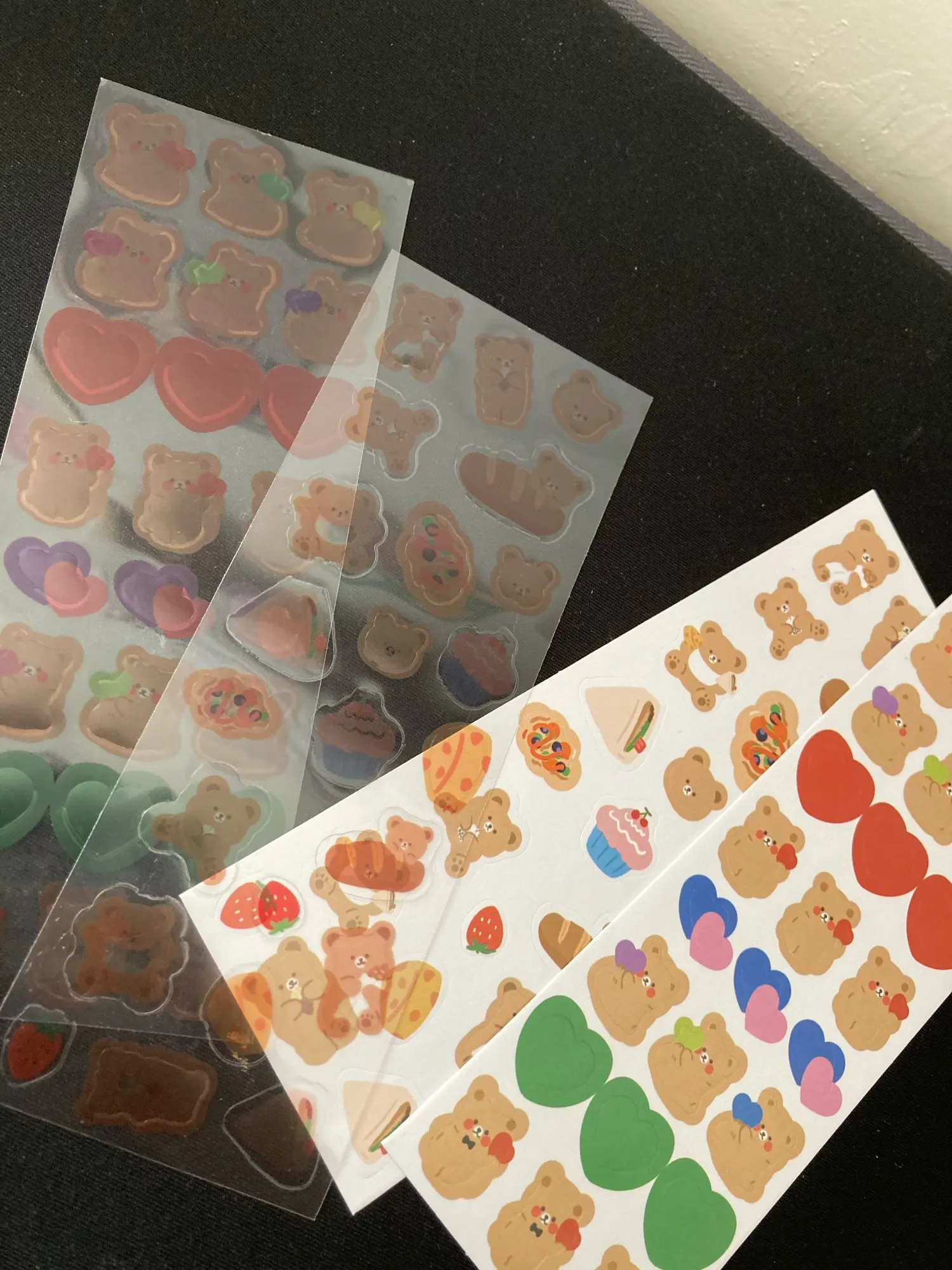 Симпатичные наклейки! Поставляется с 4 листами, 2 дизайна нормального и полупрозрачного варианта каждого :)