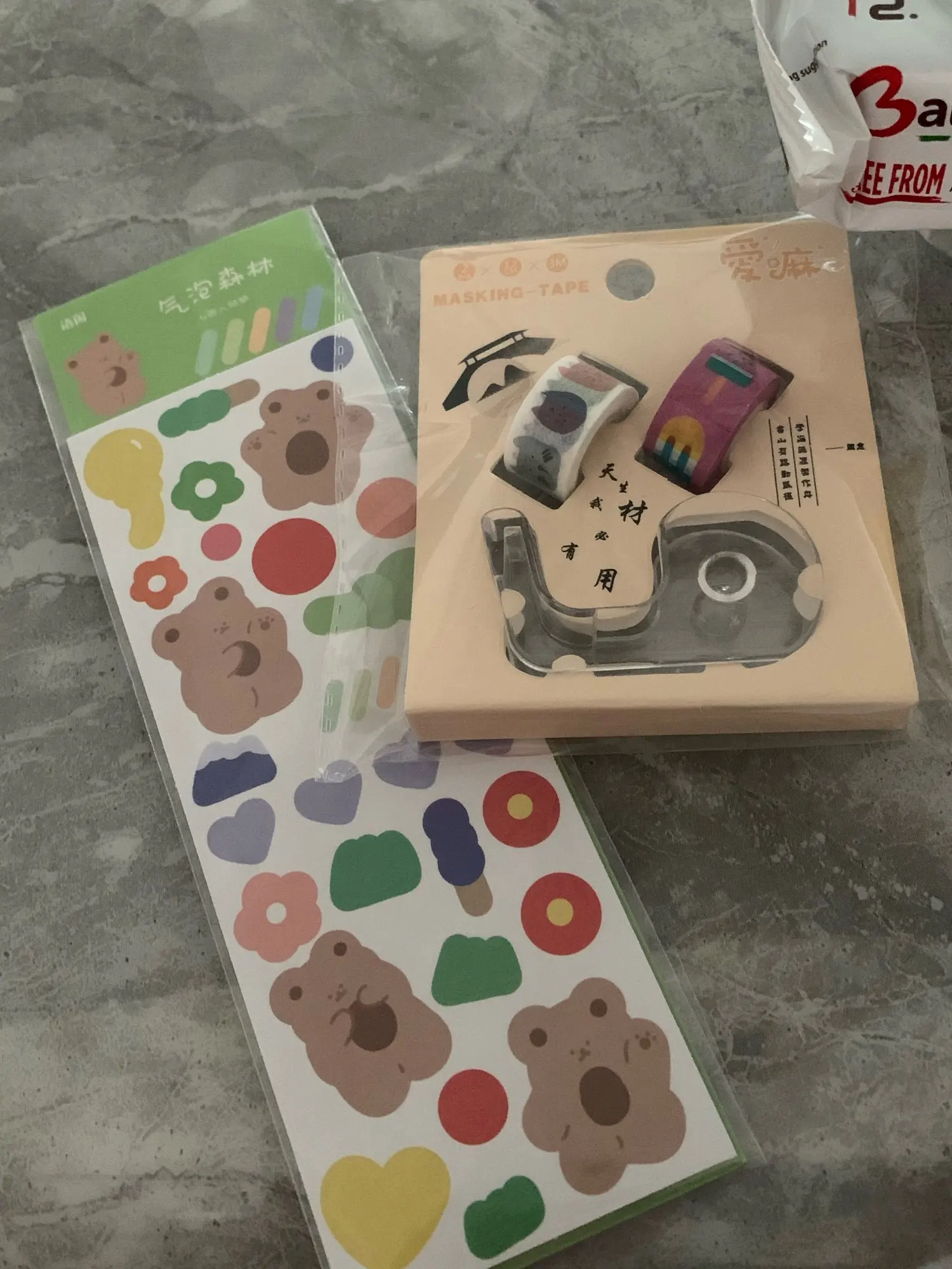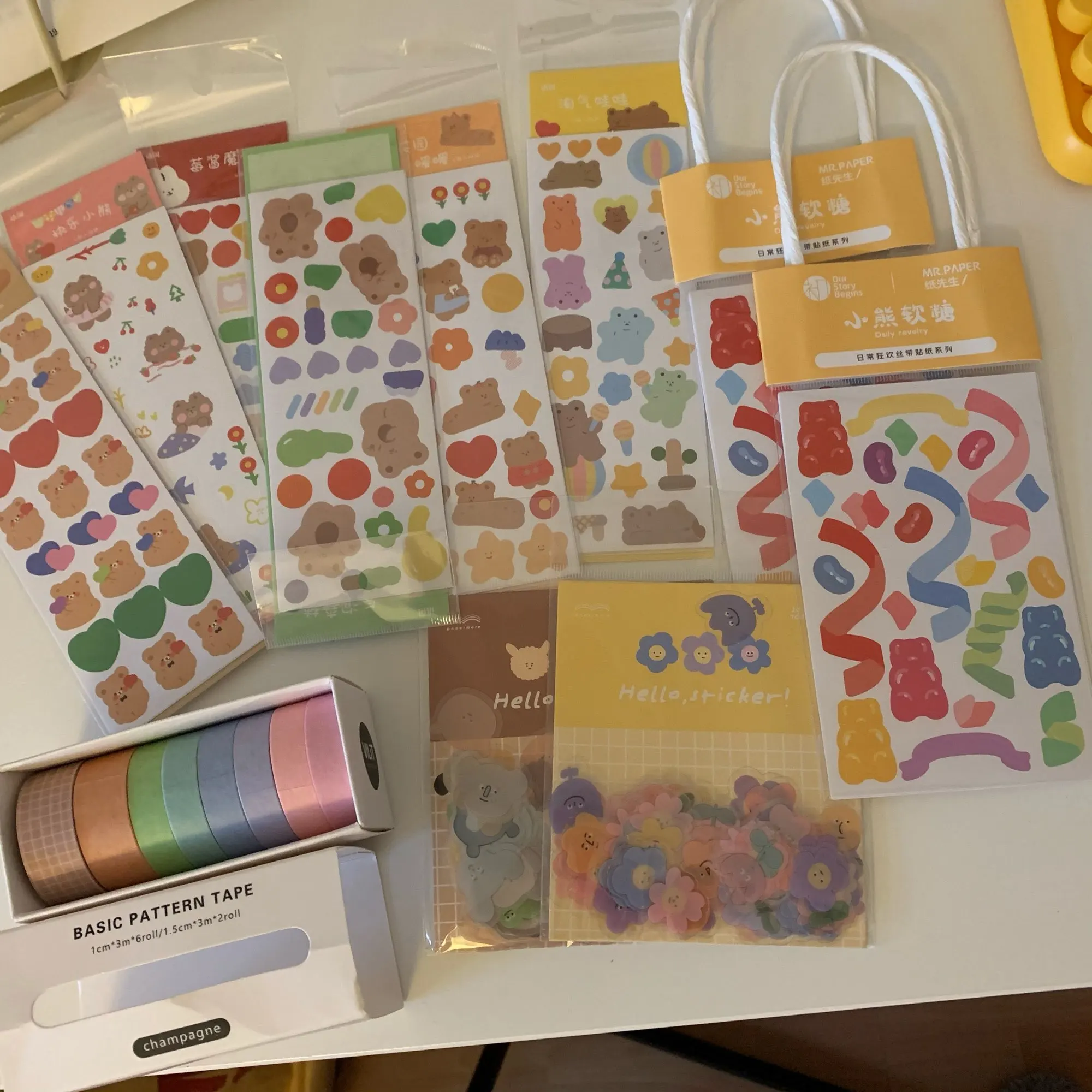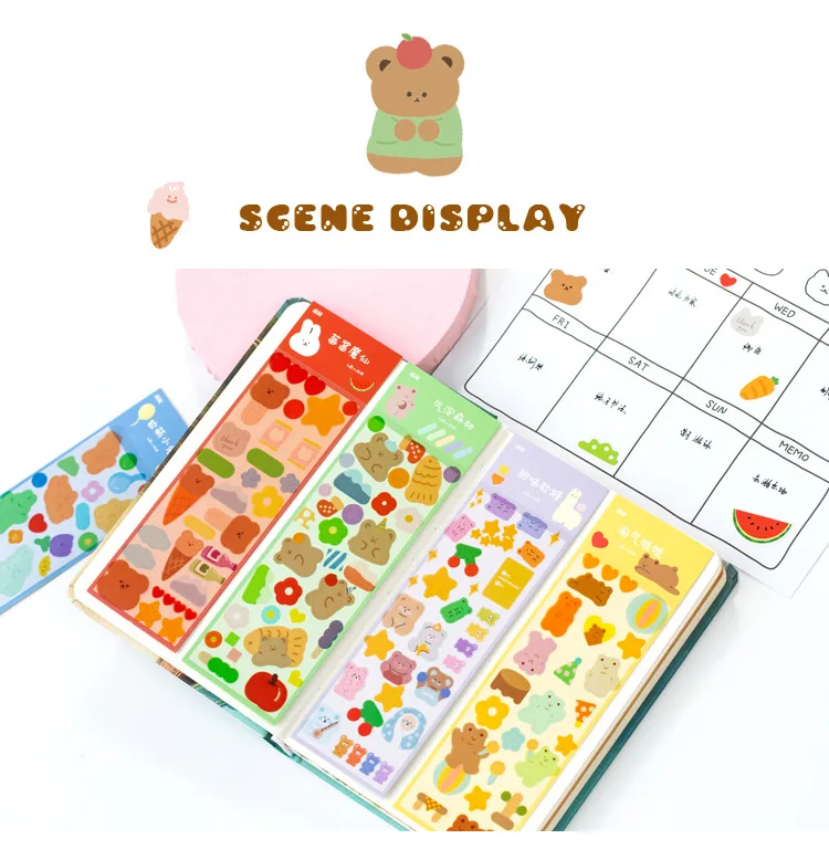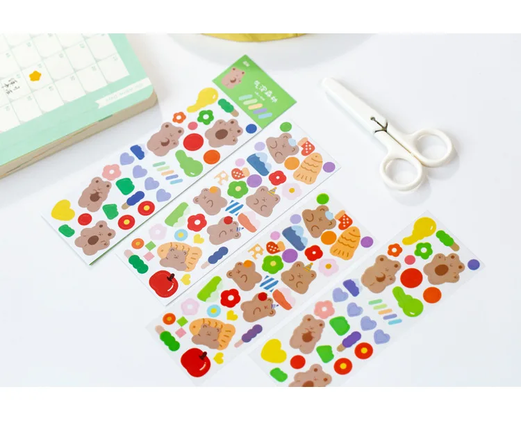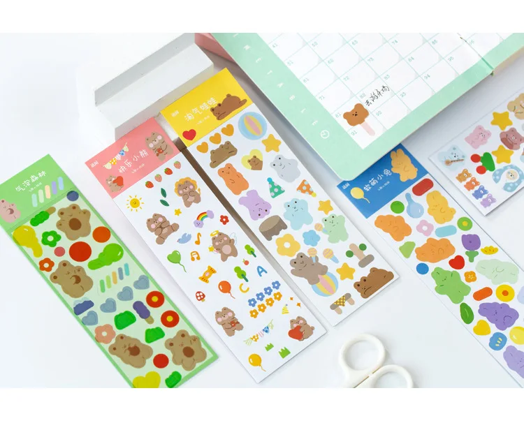 Декоративные наклейки Mohamm, 4 листа, с милым медведем, для скрапбукинга, бумаги для заметок и ПВХ, хлопья, канцелярские принадлежности для офиса