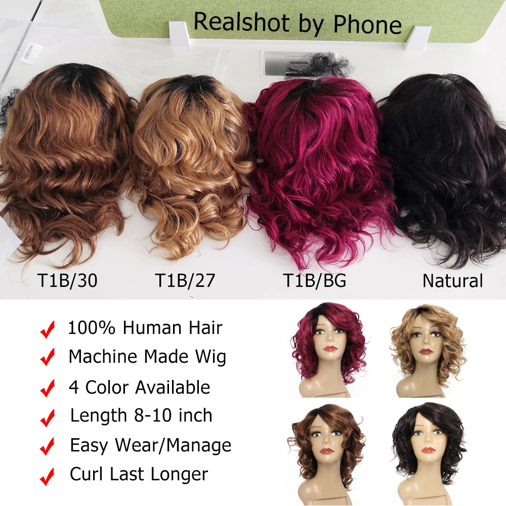 DIY парик, 100% человеческие волосы парики с челкой, короткие волосы стиль. Парик, легко носить и сниматьНатуральный цвет, 1B 27, 1B 30, 1B бордовый