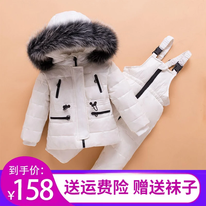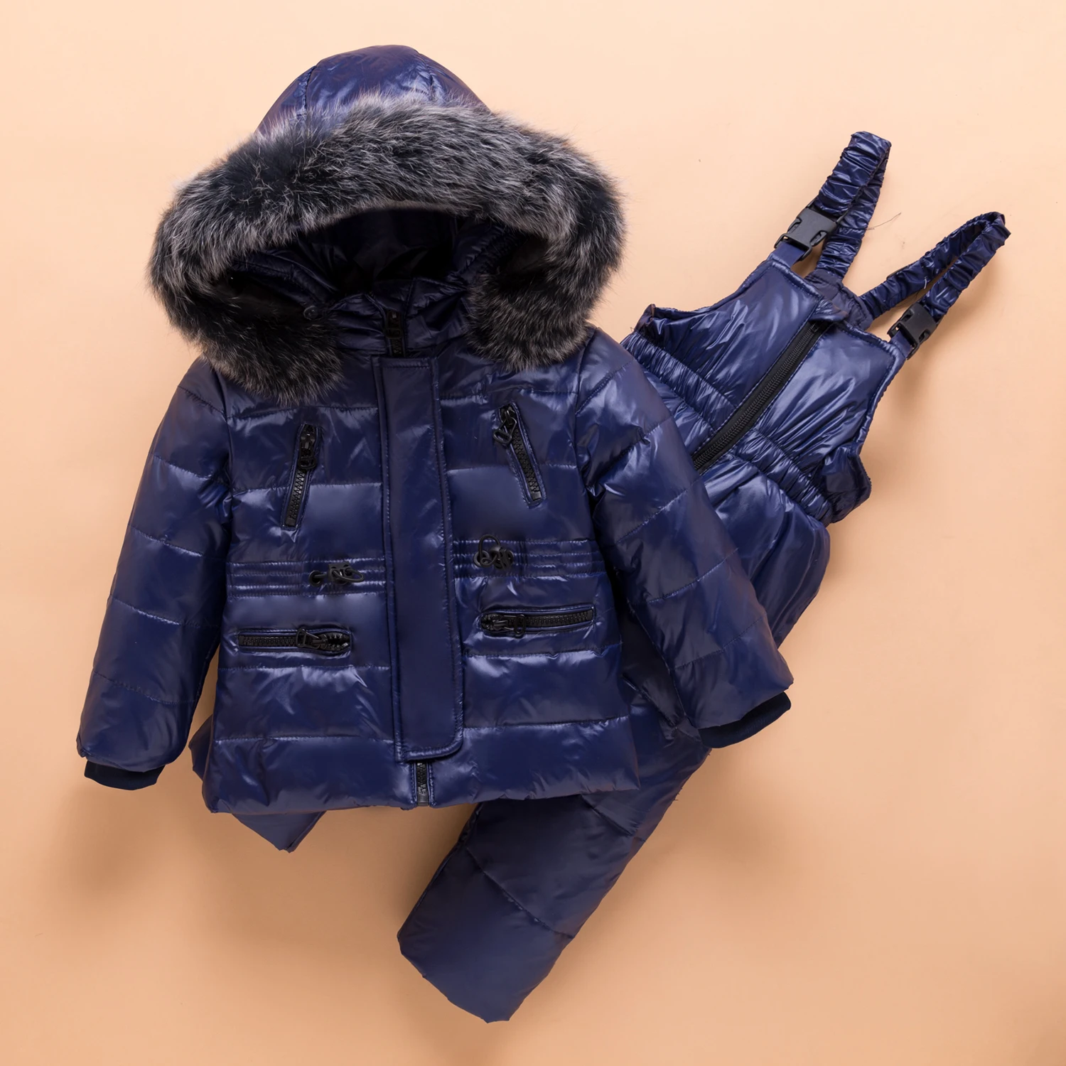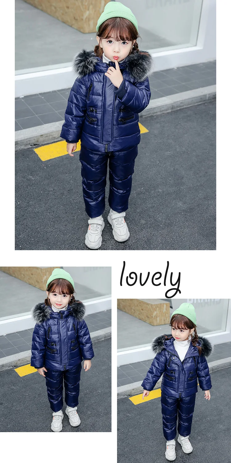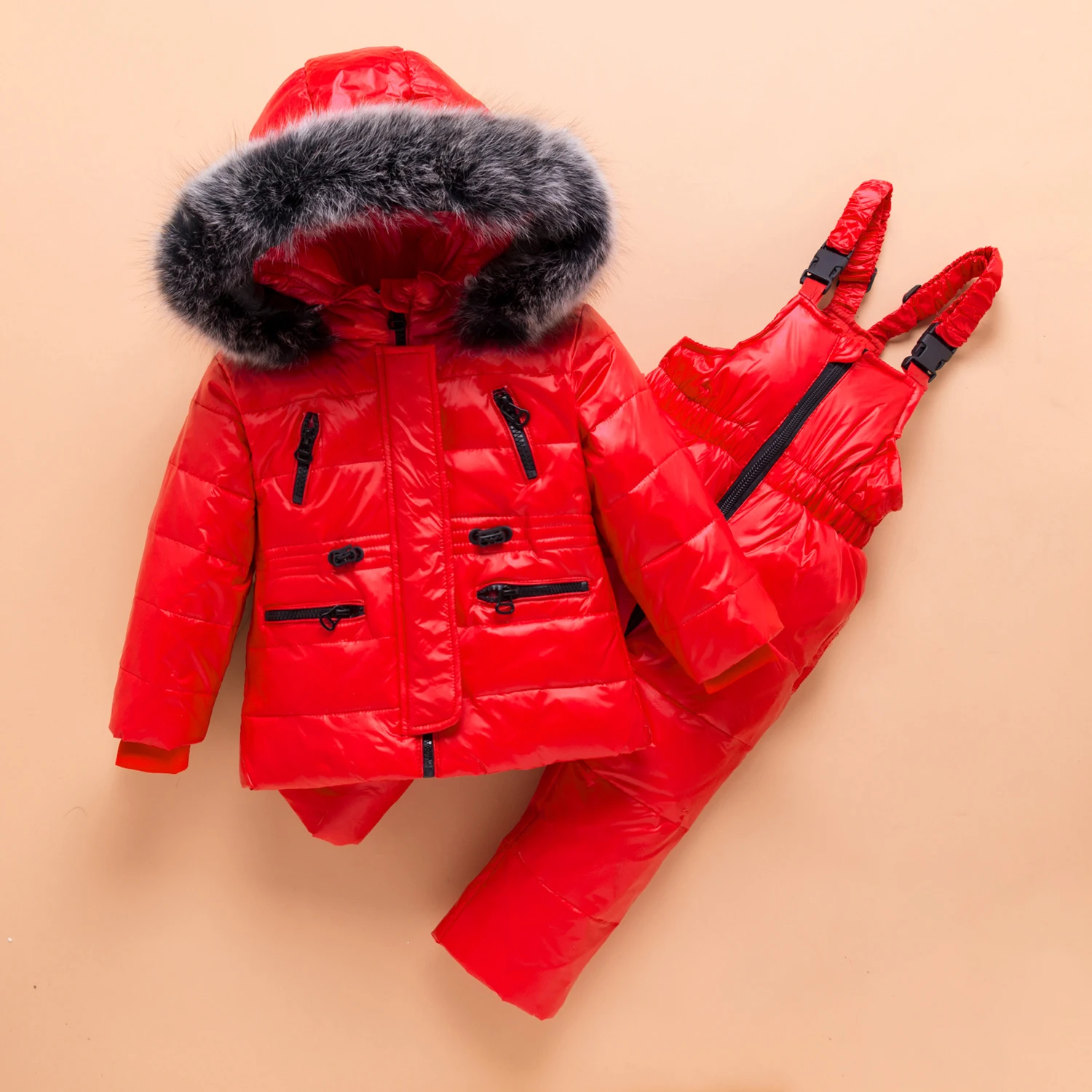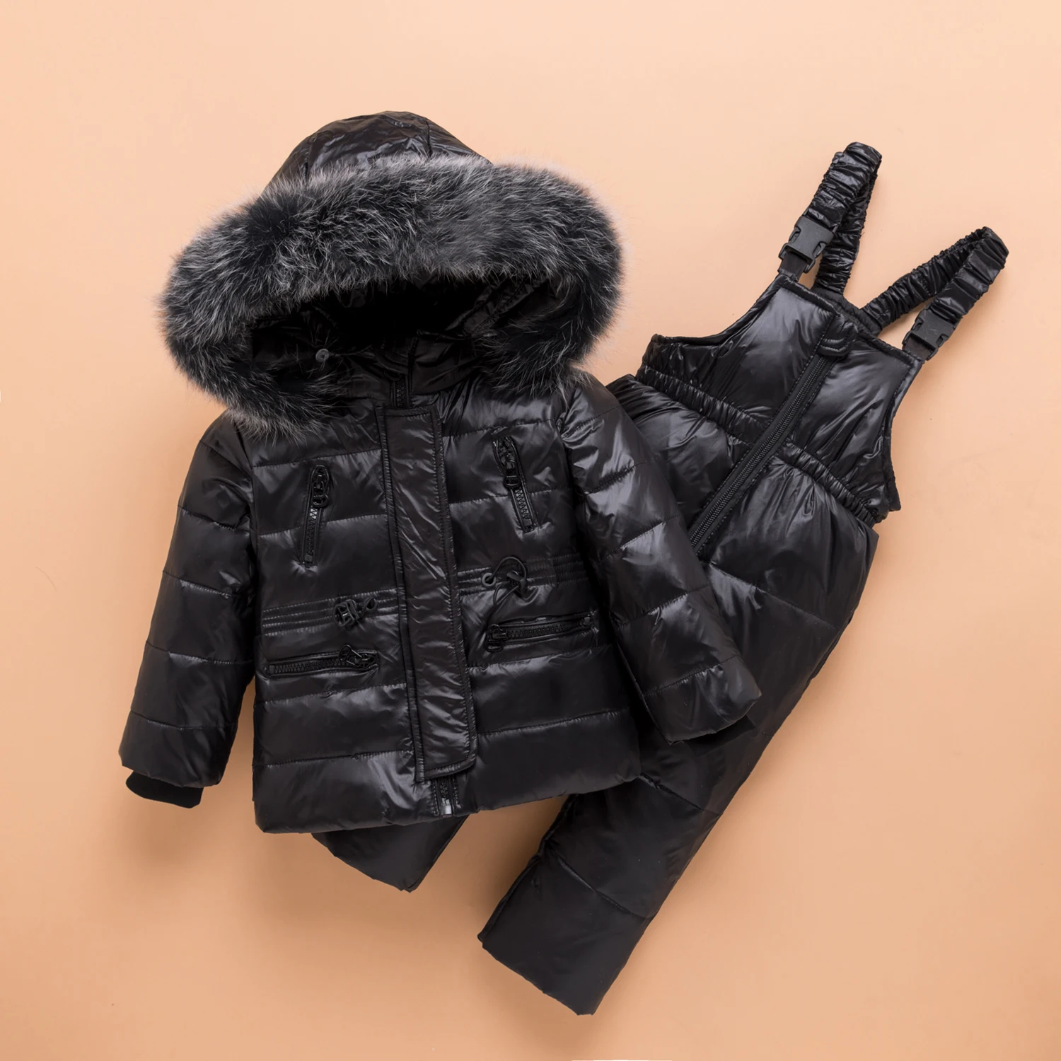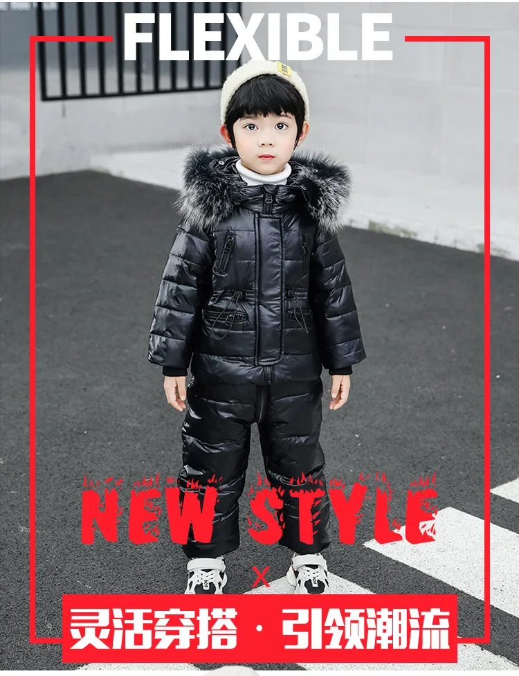 Новинка, комплект одежды для маленьких мальчиков, пальто для маленьких девочек, зимняя плотная детская одежда, водонепроницаемая большая НАТУРАЛЬНАЯ меховая одежда для девочек
