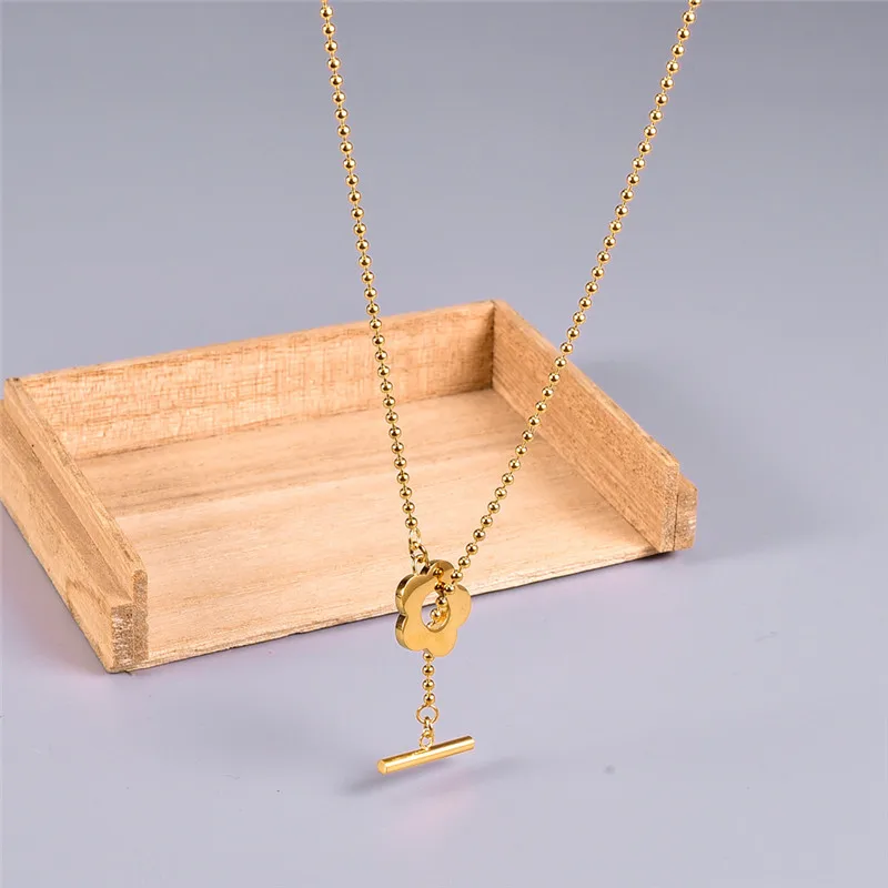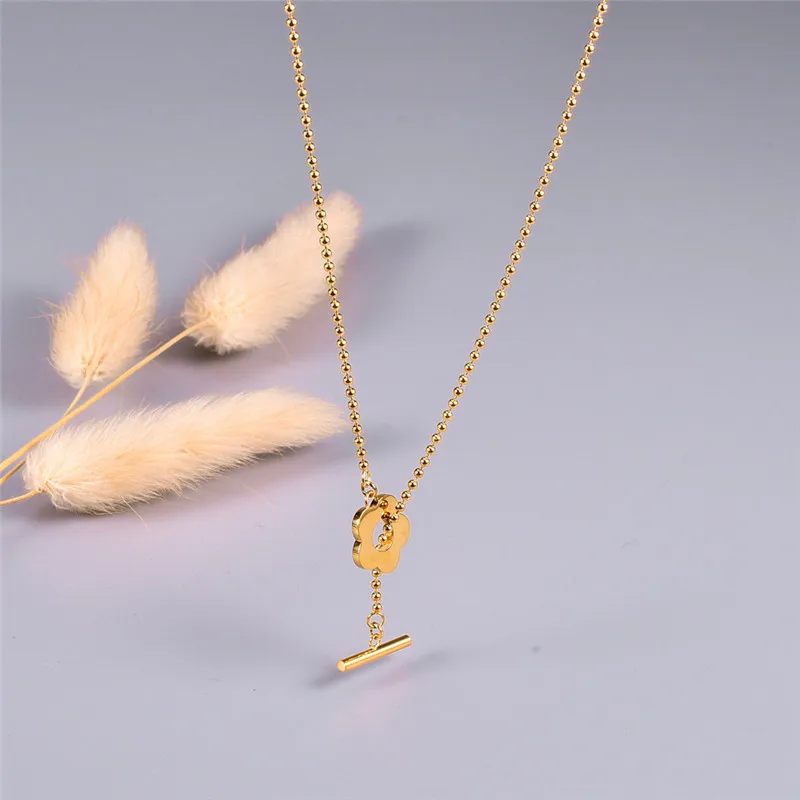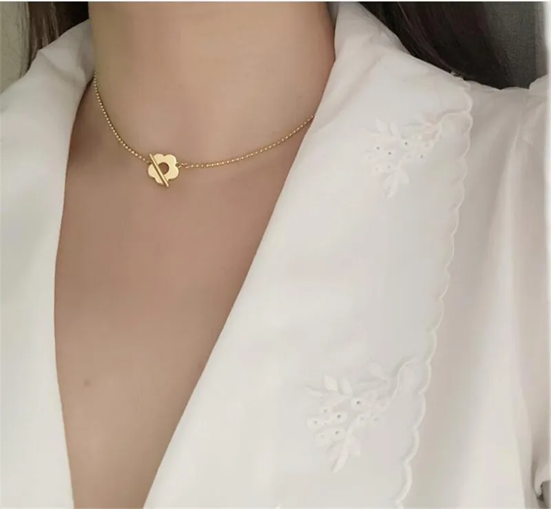 YUN RUO 2020 Простой Модный желтое золото Цвет Цветок чокер T пряжка ожерелье из титановой стали ювелирные изделия женские аксессуары никогда не выцветают
