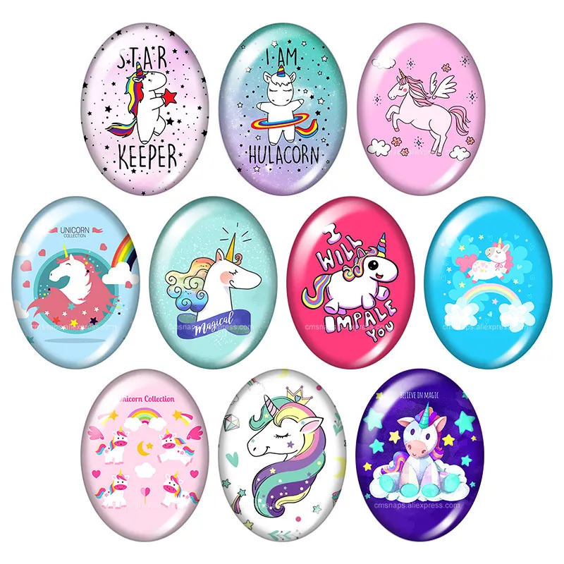 Мультяшный милый Волшебный Единорог Овальный 13x1 8 мм18x2 5 мм30x40 мм смешанный фото стекло кабошон демонстрация плоская задняя часть ювелирные изделия