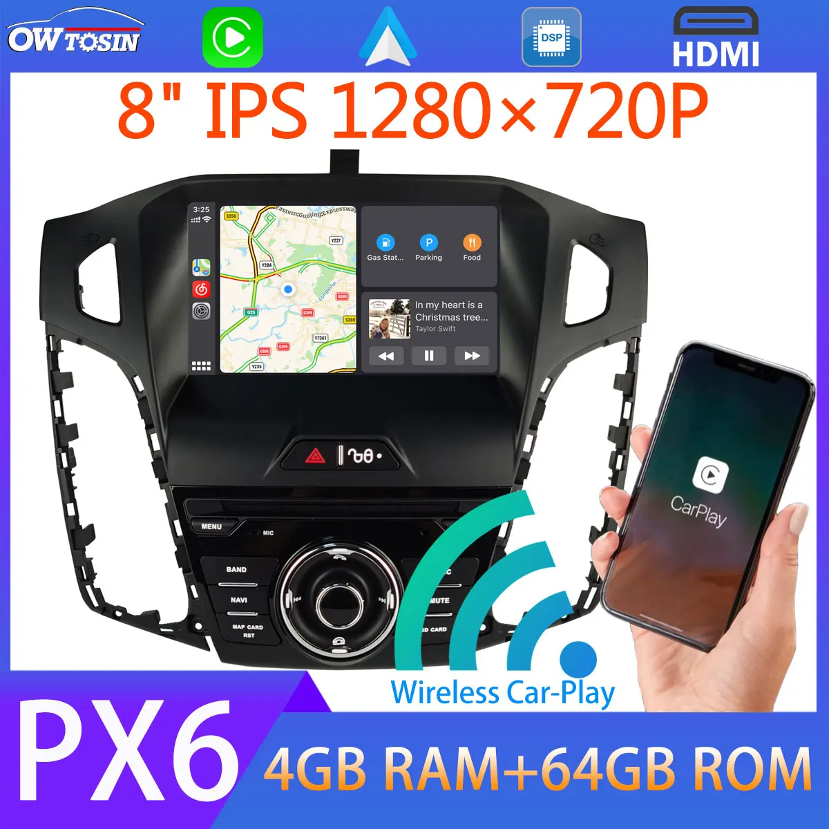 Автомобильный мультимедийный плеер, DVD-проигрыватель с экраном 8 дюймов, IPS, 1280*720P, PX6, 4 Гб + 64 ГБ, Android 10, Ford Focus MK3, 3, 2012, 2013, 2014, радио, GPS, Carplay, DSP, 5 USB