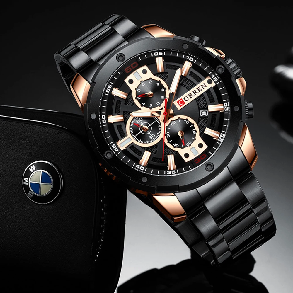 Часы наручные мужские кварцевые, спортивные Роскошные водонепроницаемые с браслетом из нержавеющей стали, с хронографом