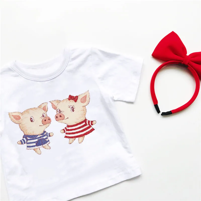 Madchen kleiназ Маленькая свинья семья мультфильм невей Ленивец хунд печать футболка для девочек Харадзюку крепкая футболка, Прямая поставка