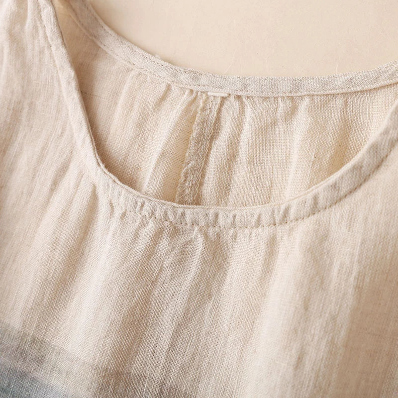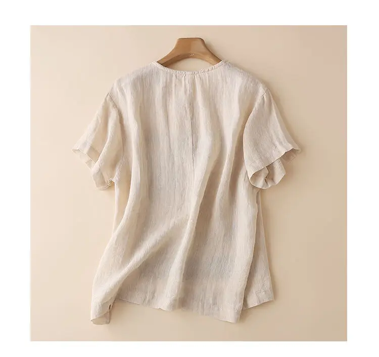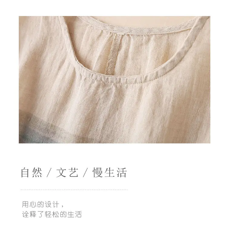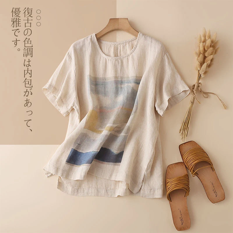 Женская свободная футболка, из хлопка и льна, с коротким рукавом, с винтажным принтом, повседневные топы, для лета, M141, размера плюс