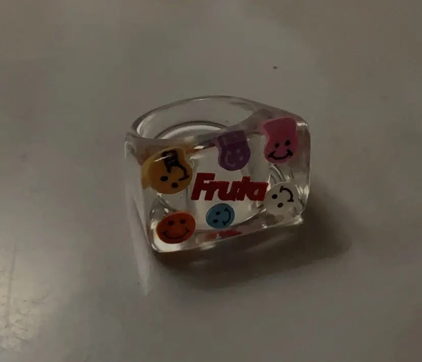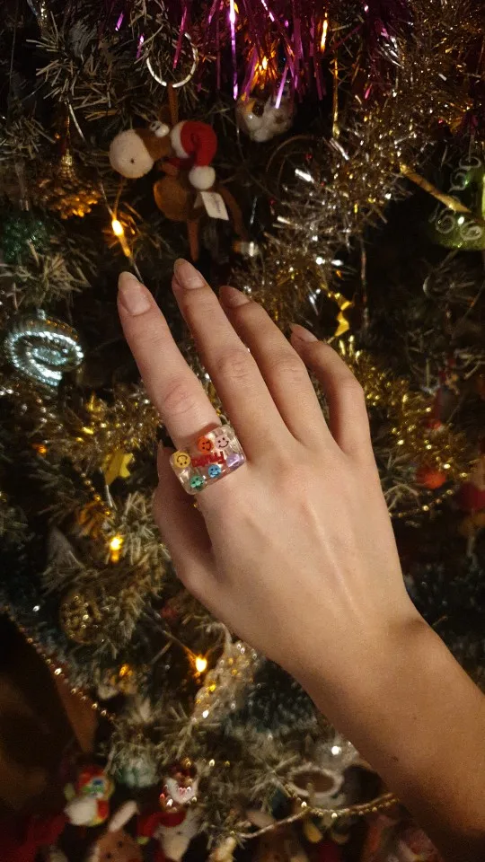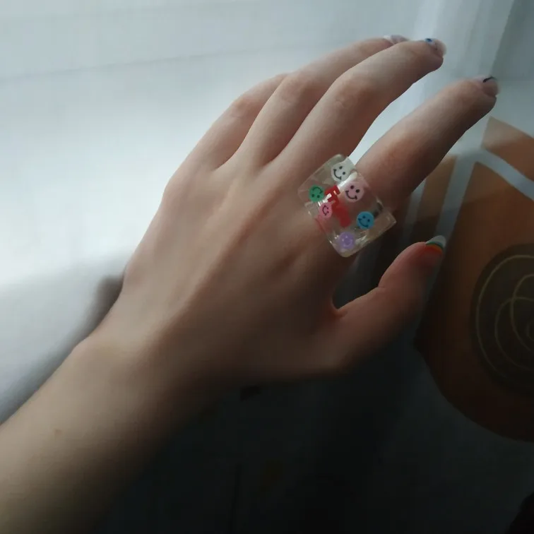 Кольцо женское массивное прозрачное, с разноцветными кристаллами и смайликами, 2020