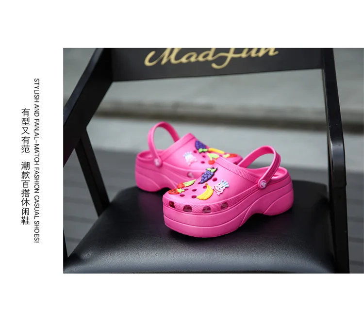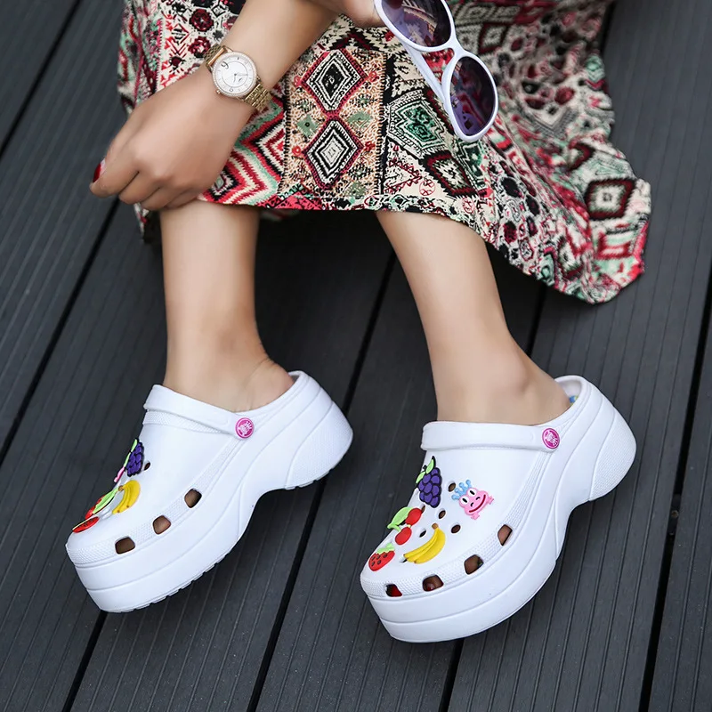 Сандалии женские с крокодиловой подошвой, босоножки для сада на толстой подошве, модная пляжная обувь с мультяшными фруктами, лето