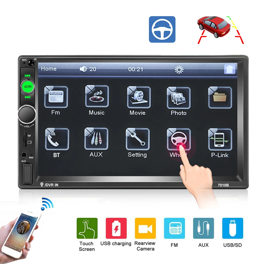 Автомагнитола Podofo универсальная, мультимедийный плеер 2 Din с 7-дюймовым сенсорным HD экраном, FM-приемником и монитором с функцией Mirror Link