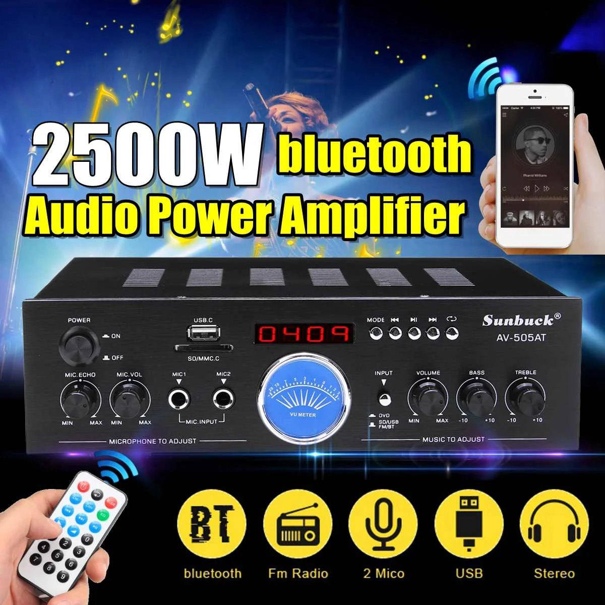 Усилитель звука, bluetooth-усилитель мощностью 2500 Вт, сабвуфер, 2 канала, FM-радио, USB, усилители для домашнего кинотеатра
