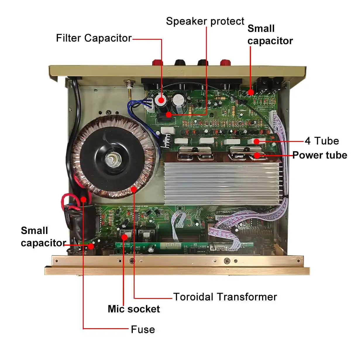 4. Двусторонний вход для караоке с микрофоном, функция регулировки эффекта цифрового реверберации.