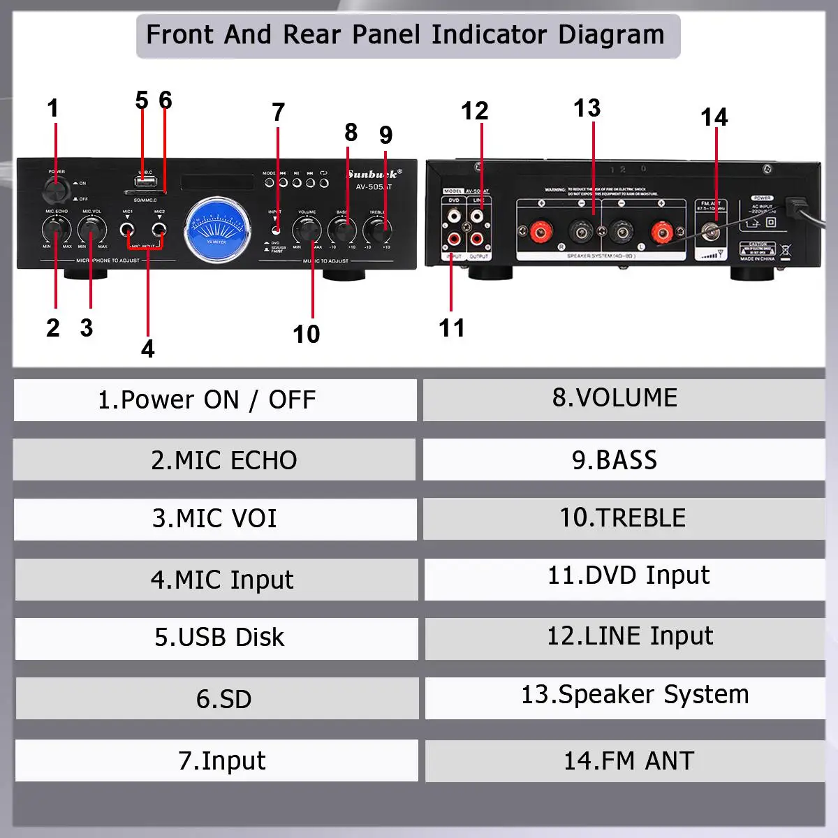 Bluetooth аудио Мощность усилитель 220V/USB/SD/2 * Входной сигнал Mic