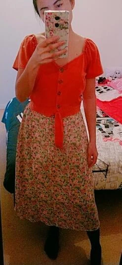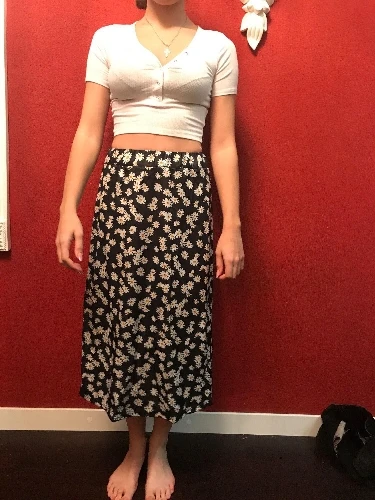 Классная, легкая шифоновая юбка, на лето. Красивый цветочный принт, мне она понравилась, только оборка, та что с боку не так высоко затянута, как на фотографии, а так в целом качестово хорошее. Продавец общительный, быстро отправил заказ, просто на таможне долго держали видимо
