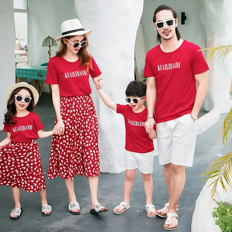 Летние Семейные комплекты платья для мамы и дочки одинаковые футболки и шорты для папы и сына одинаковые парные наряды для всей семьи