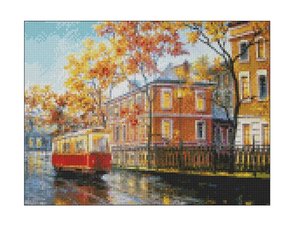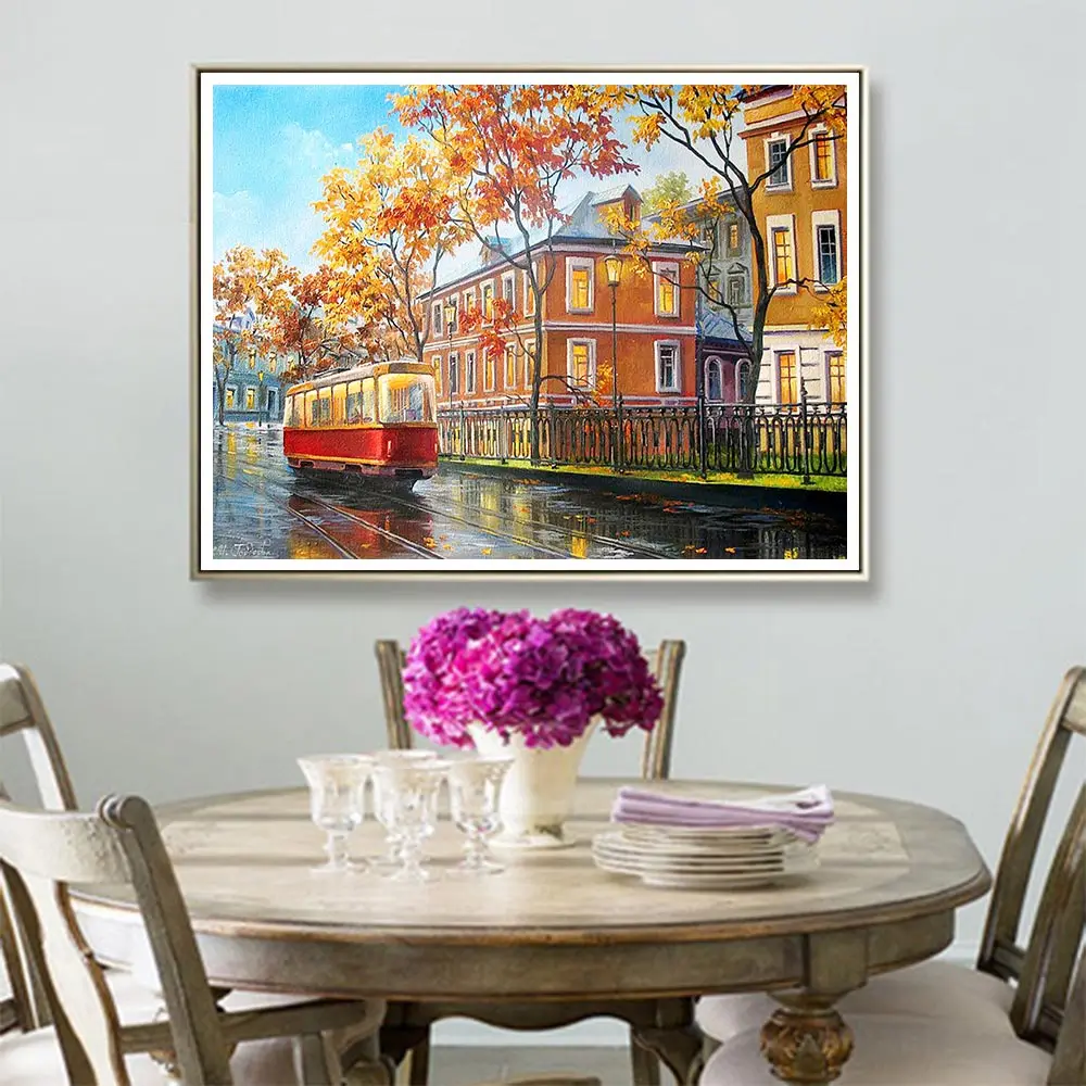 Городской трамвайный дом, живописная Алмазная картина, Круглая Полная дрель, Nouveaute, сделай сам, мозаика, вышивка 5D, вышивка крестиком, домашний декор, подарки