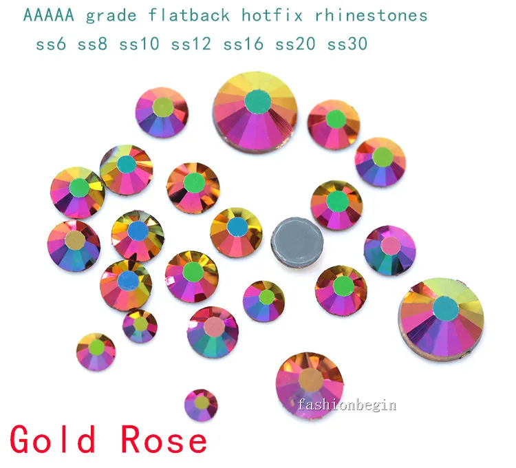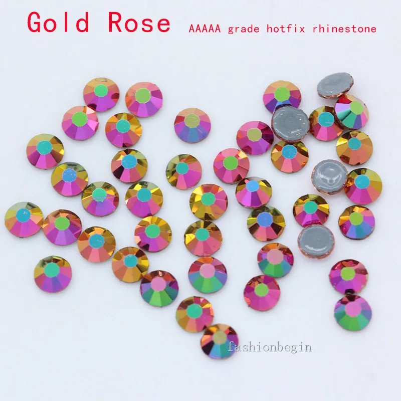 Стразы из блестящего стекла SS3-SS30, все размеры, радуга, розовое золото, высшее качество, исправленное железо стразы на тканевой одеждедизайне ногтей