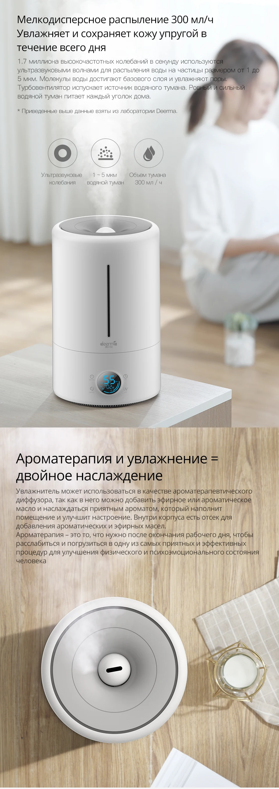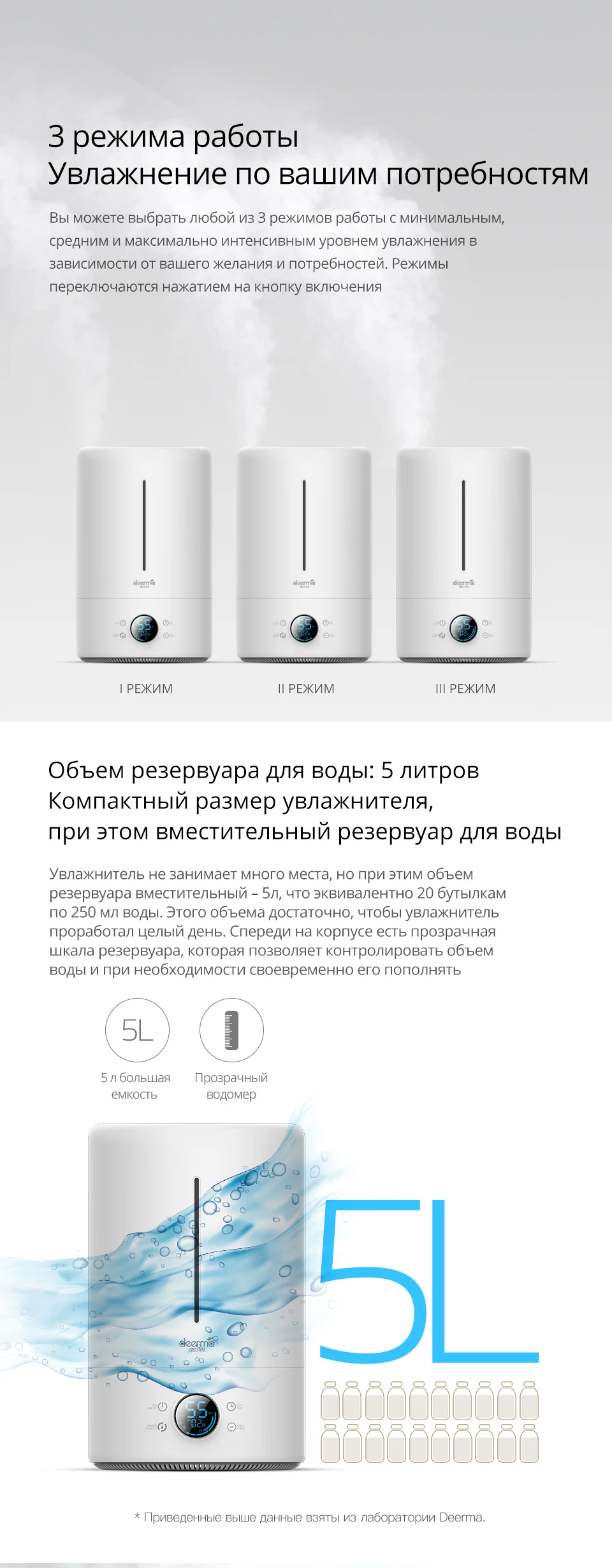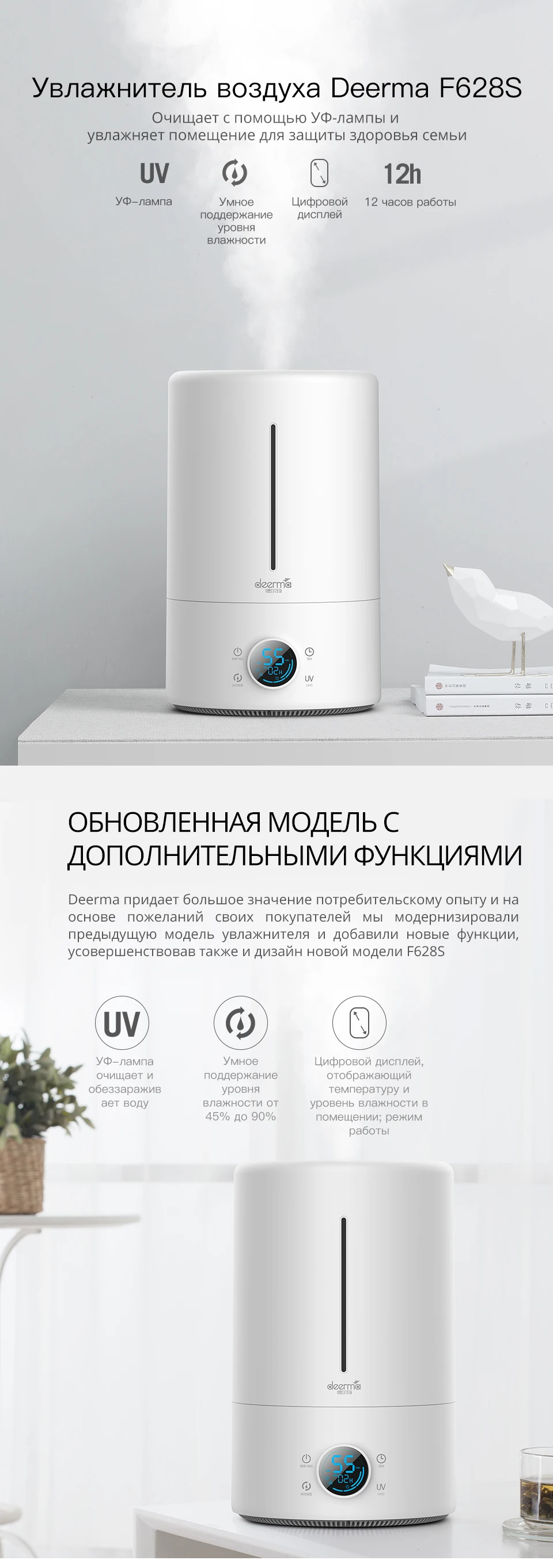 Deerma F628S UV увлажнитель воздуха для дома 5L с поддержкой температуры, функцией ароматизации и цифровым дисплеем