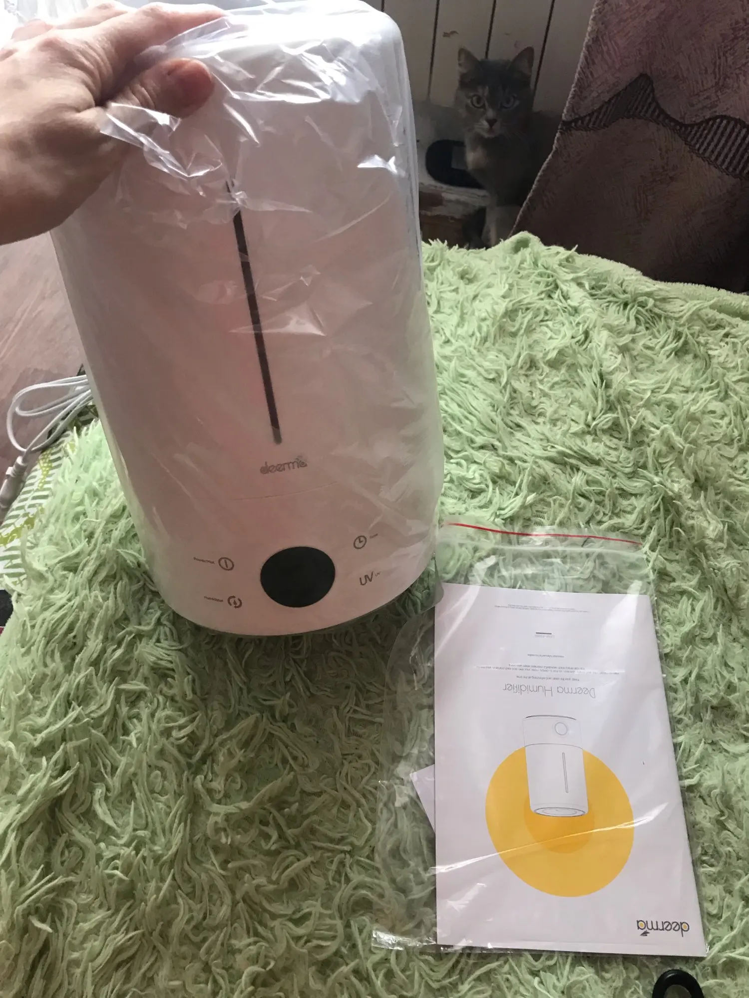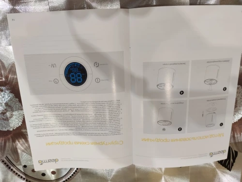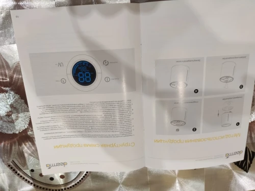 очень быстрая доставка курьером за один день, упаковано хорошо, есть инструкция на русском языке сразу же сняла крышку налила воды всклень и включила всё работает начала увлажнять помещение. купила со всеми купонами за 2.200