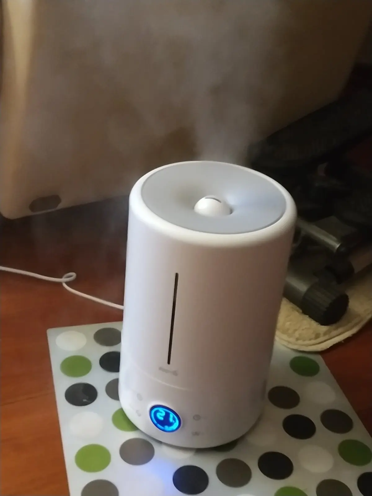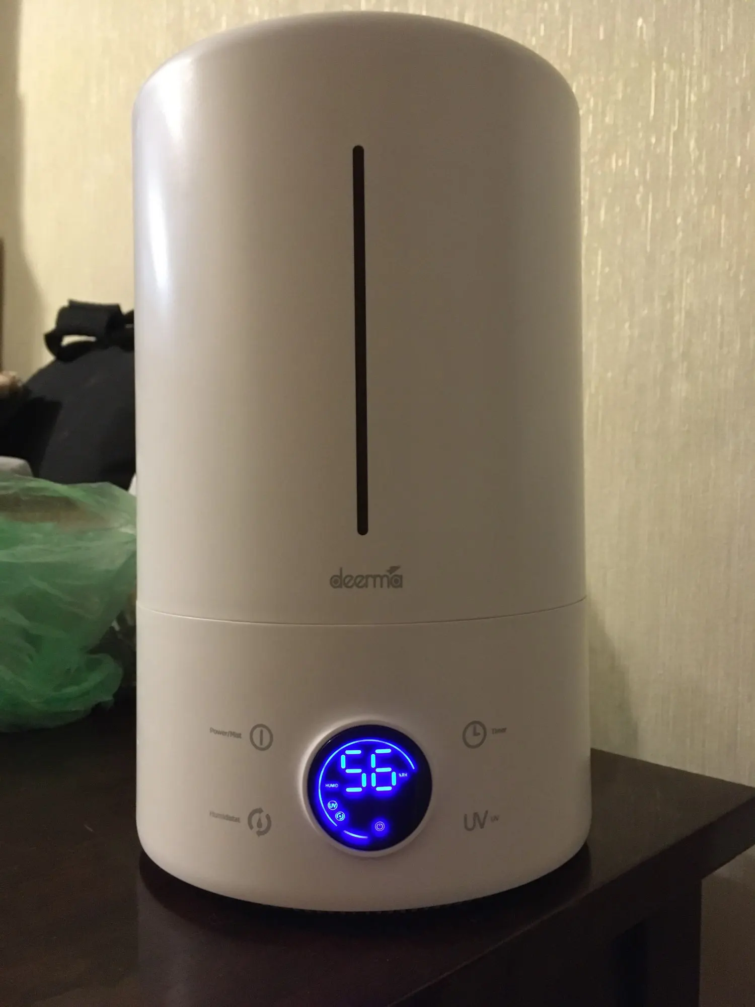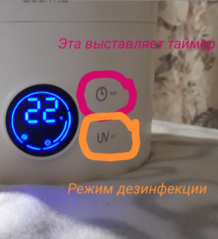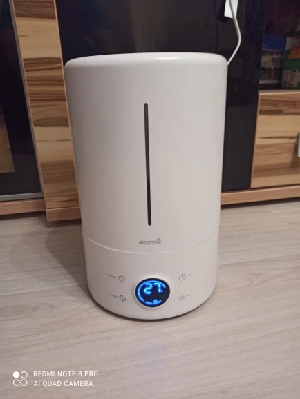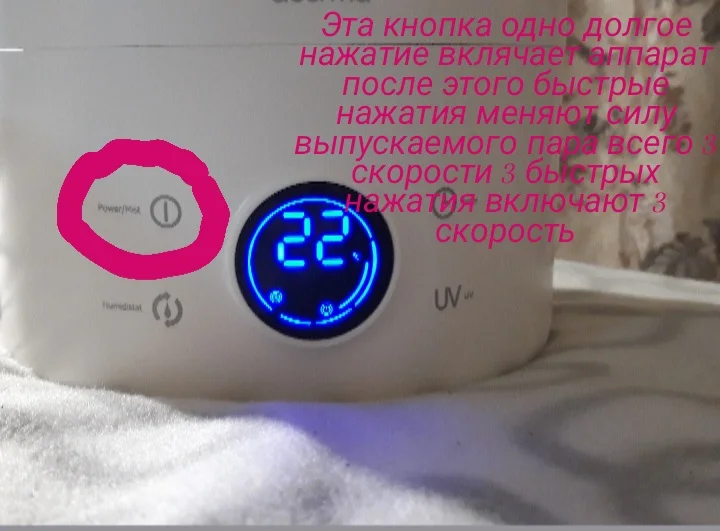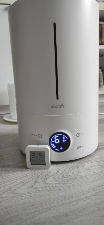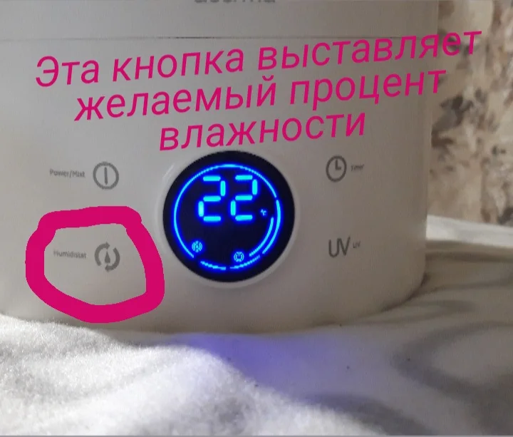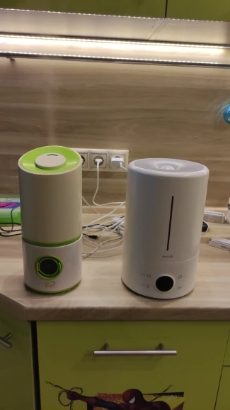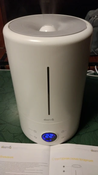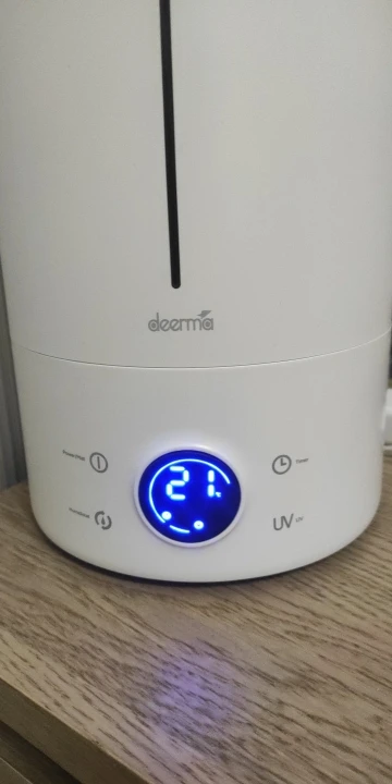 На 2200 хороший увлажнитель. На максимальном уровне за 10 минут лужу сделал (на минимуме и среднем все нормально). Воду лью из фильтра, налёта нет. Окошко для проверки уровня воды не удобное, когда наливаешь не всегда видно сколько воды налил. Отключение по уровню влажности и количеству воды работает. УФ лампа светит и даже по спектру похожа на бактерицидную.