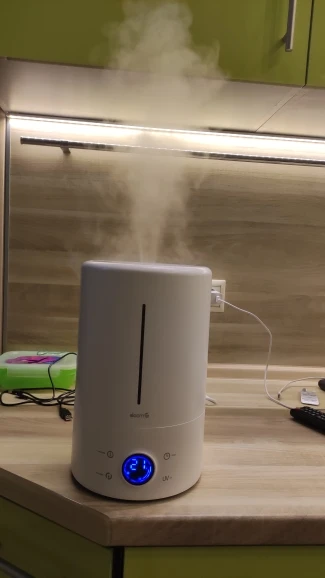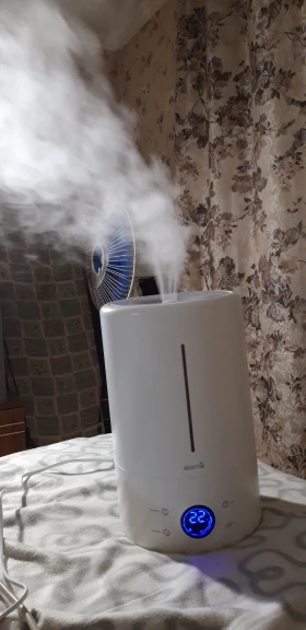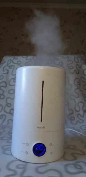 Заказала 11.01 -13.91 получила курьером службы КСЭ (привёз домой) упакован был в кордонную коробку, Верх и низ обклеен скотчем. Открыла, все цело! Внешний вид нового прибора, сняла бак с основания, подождала час после улицы , открутила серую пробочка и залила воду в бачок! Включила в сеть. На самом приборе нажала верхнюю левую клавишу и вуа -ля! Загорелся дисплей голубым цветом ( температура и влажность,поочередно) выставила таймер на 6 часов работы! Влажность с 40% поднял до 65%! Три режима интенсивности подачи пара! Пар холодный-туман! Работа практически бесшумная, время от времени булькает вода! Спать не мешал! Выключился сам по истечение заданого времени!
