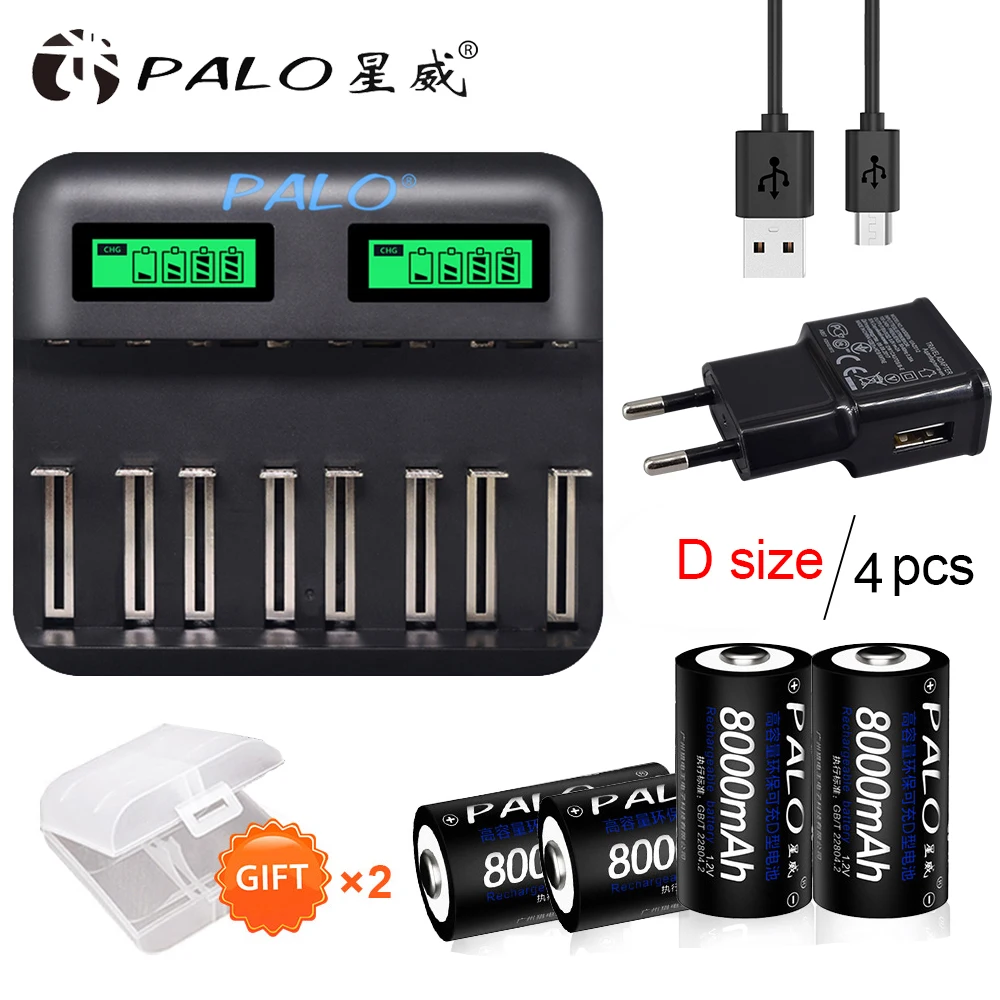 Интеллектуальное зарядное устройство с ЖК-дисплеем для nimh nicd 1,2 в, перезаряжаемая батарея + 1,2 в nimh перезаряжаемая батарея размера D 8000 мАч