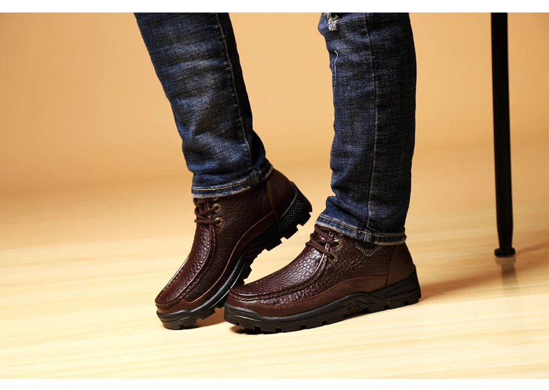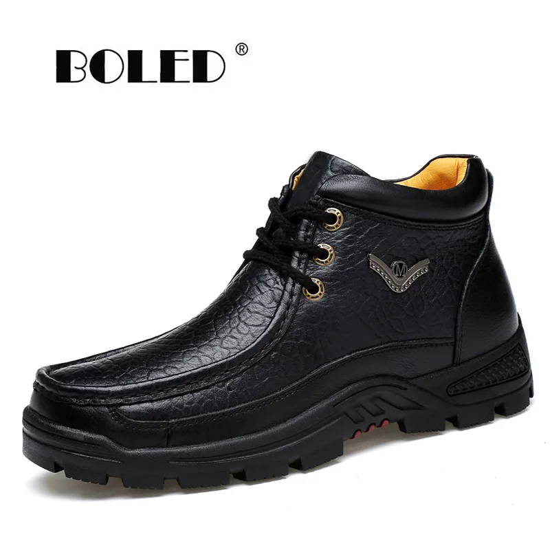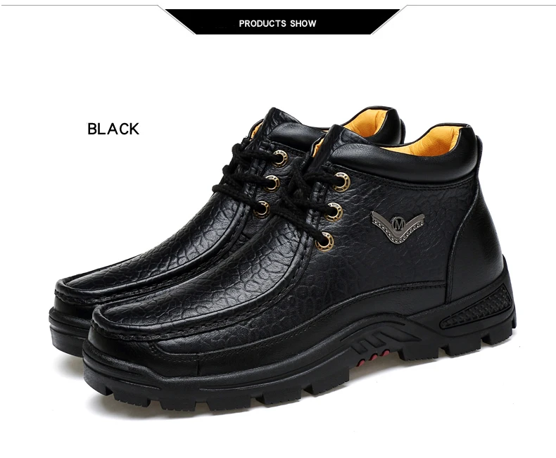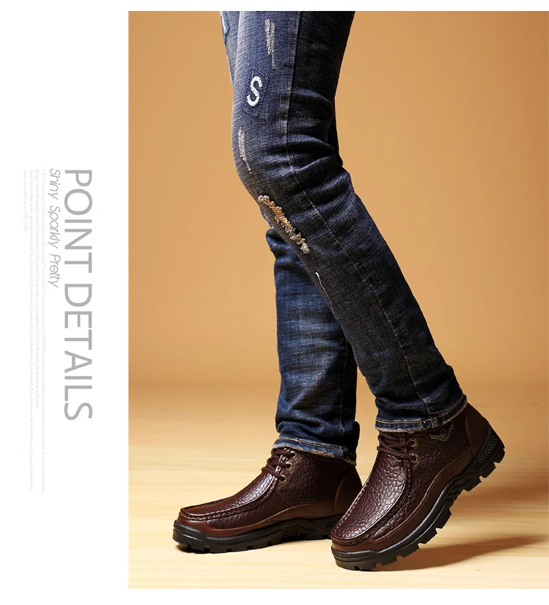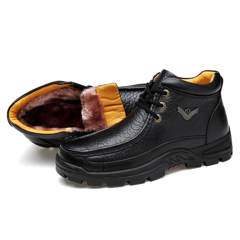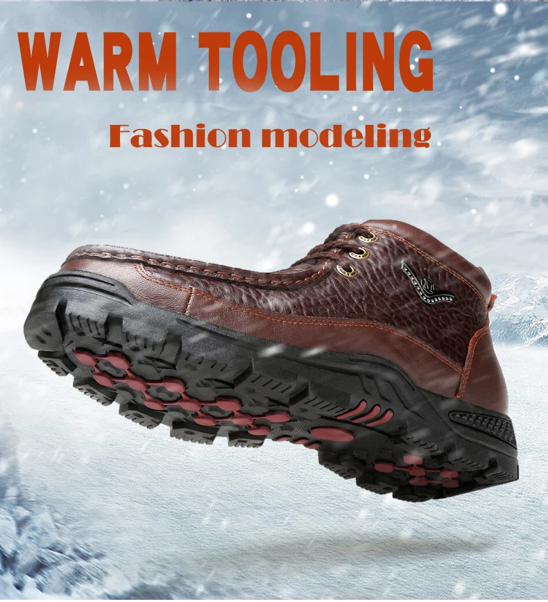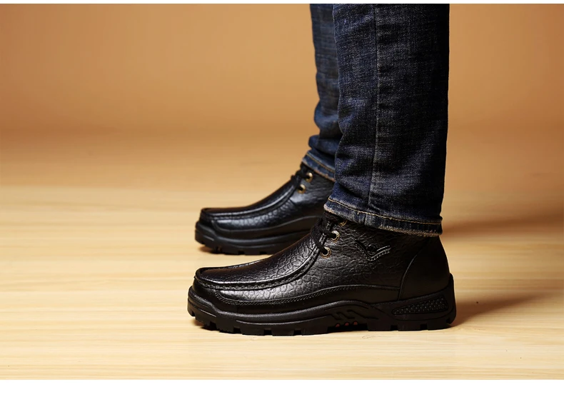 Мужские ботинки из натуральной кожи, плюшевый мех, водонепроницаемая зимняя обувь, на шнуровке, уличные теплые сапоги для снега