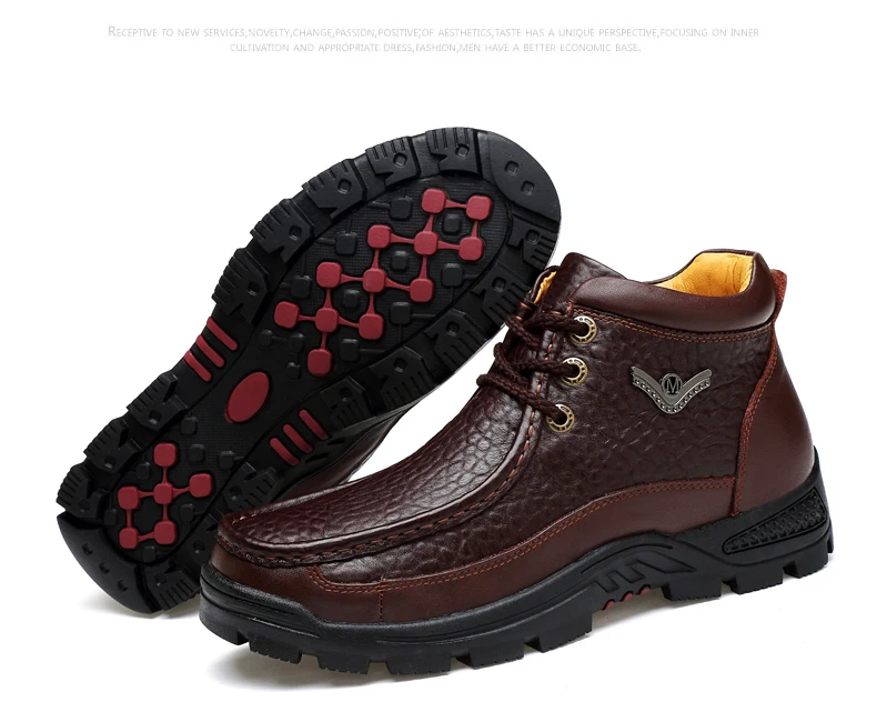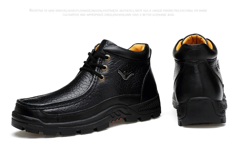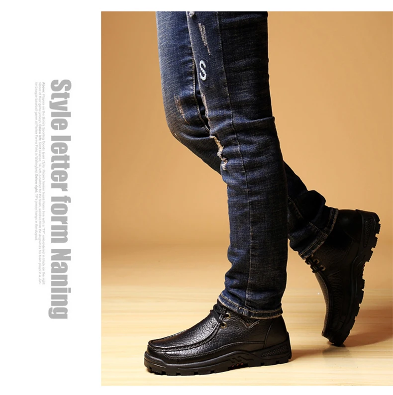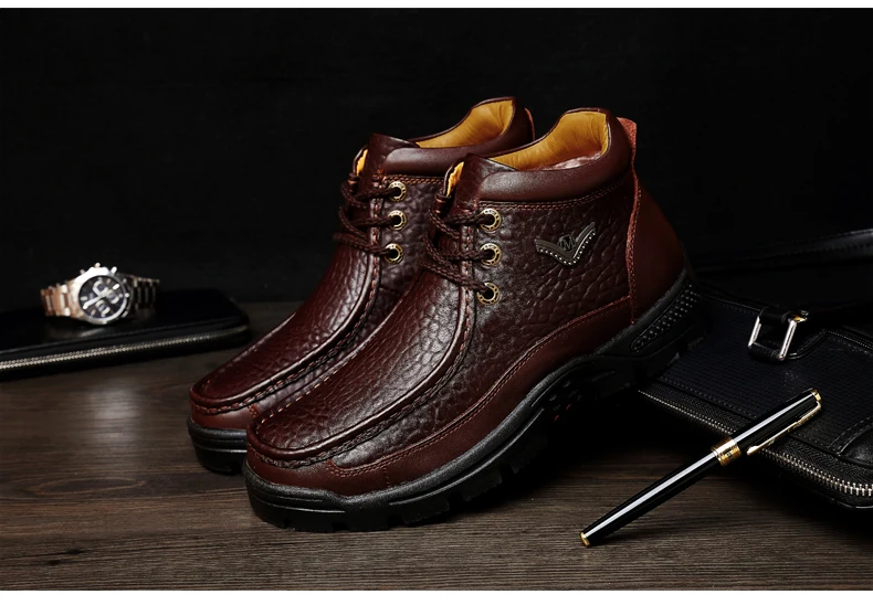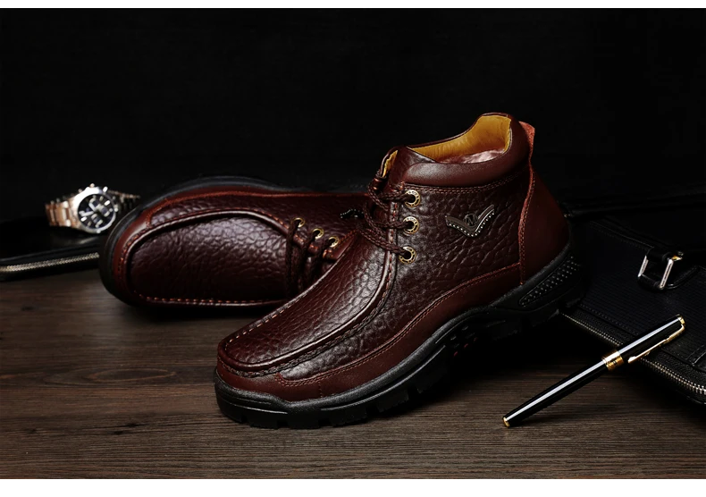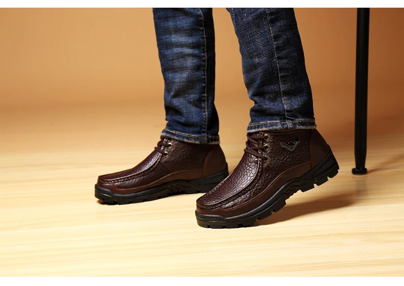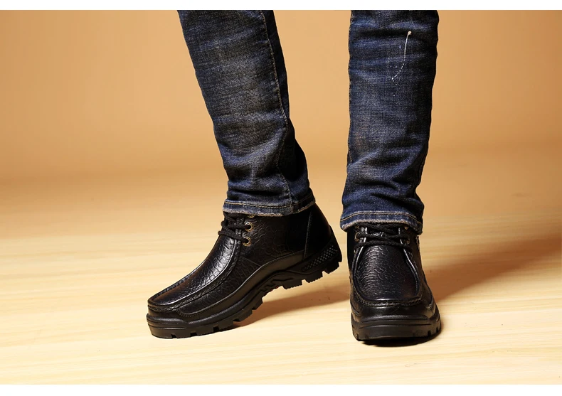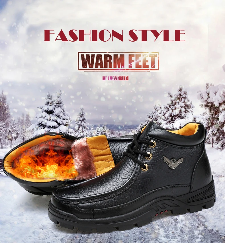 Мужские ботинки из натуральной кожи, плюшевый мех, водонепроницаемая зимняя обувь, на шнуровке, уличные теплые сапоги для снега