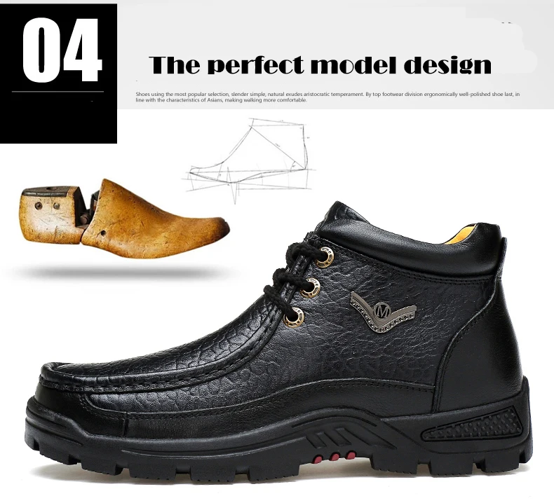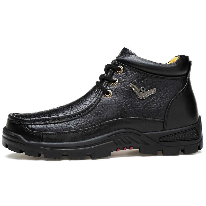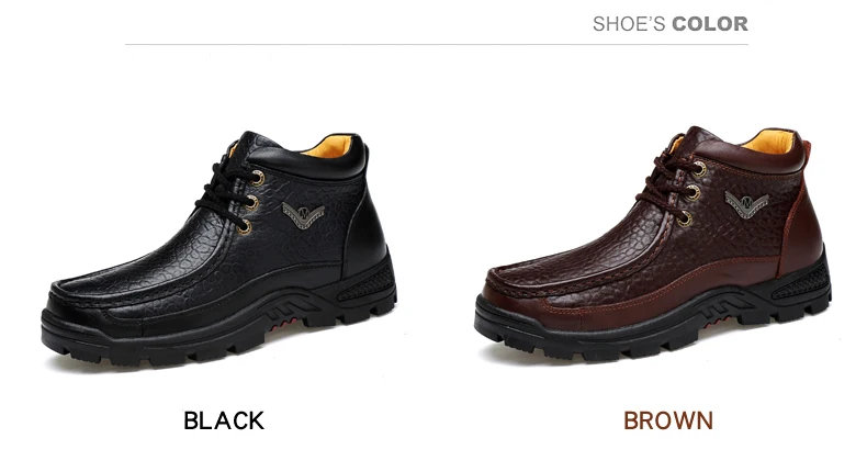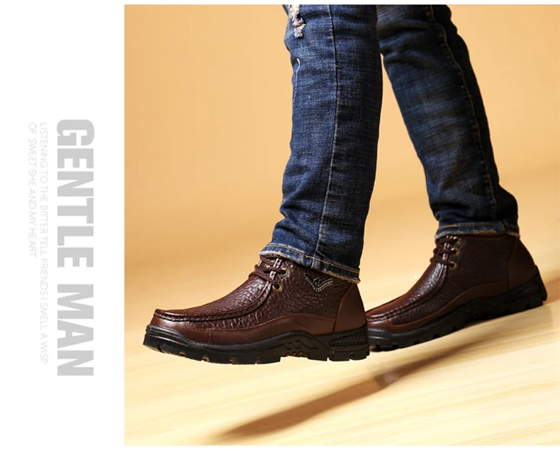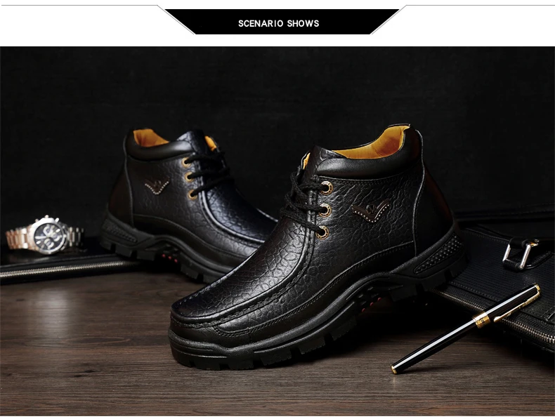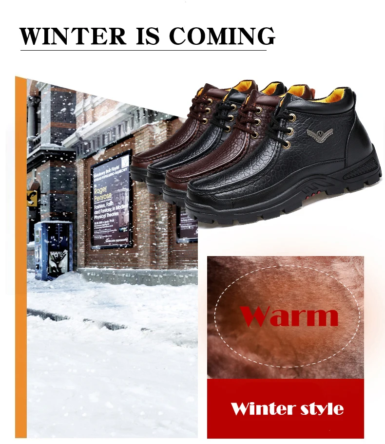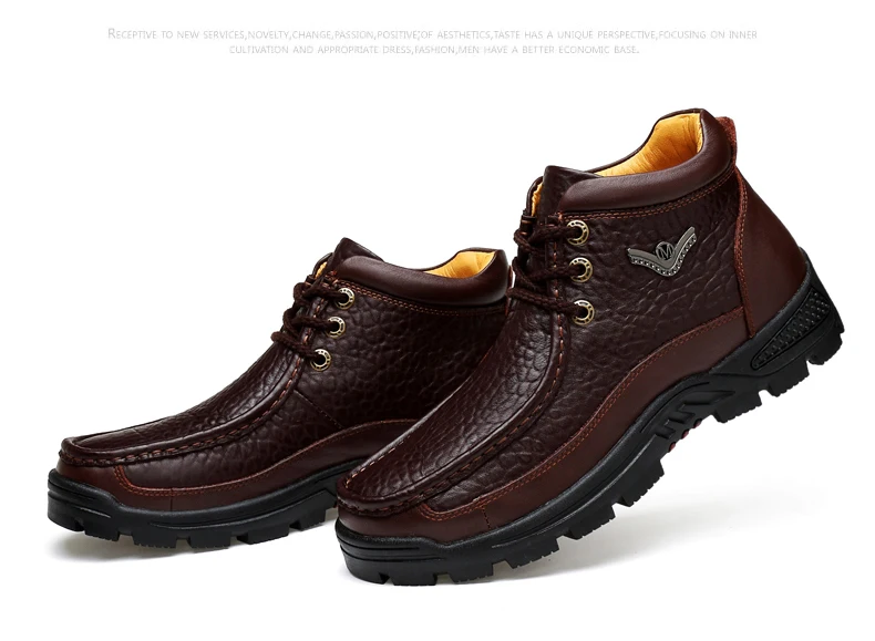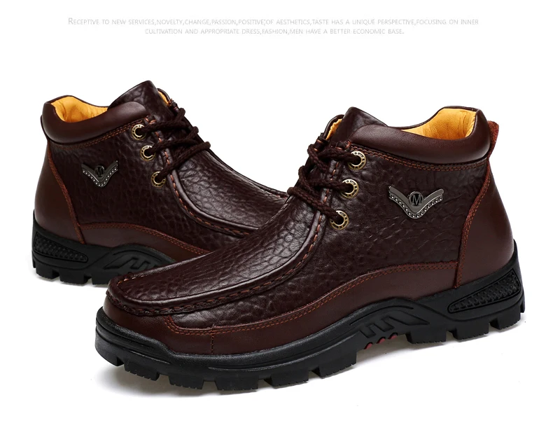 Мужские ботинки из натуральной кожи, плюшевый мех, водонепроницаемая зимняя обувь, на шнуровке, уличные теплые сапоги для снега