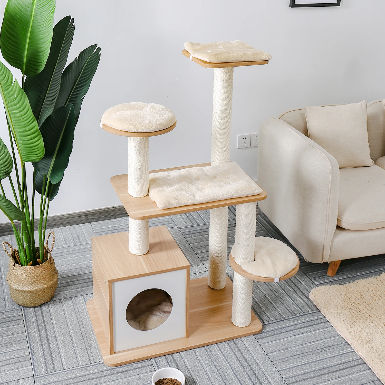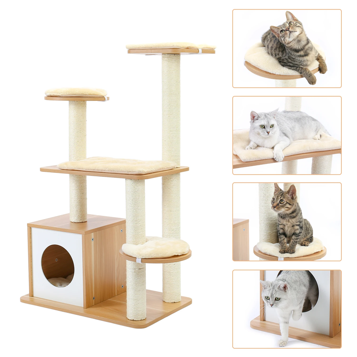 Кошачий домик на дереве, башня, деревянная Когтеточка для кошек, покрытые сизалем, подушечки с когтеточками с игровым мячом для кошек, котят, быстрая доставка