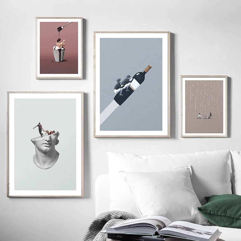 Креативные винные бутылки ракетки настенные Ar абстрактные плакаты и принты в стиле сурреалистичного принта фотографии украшения спальни для дома