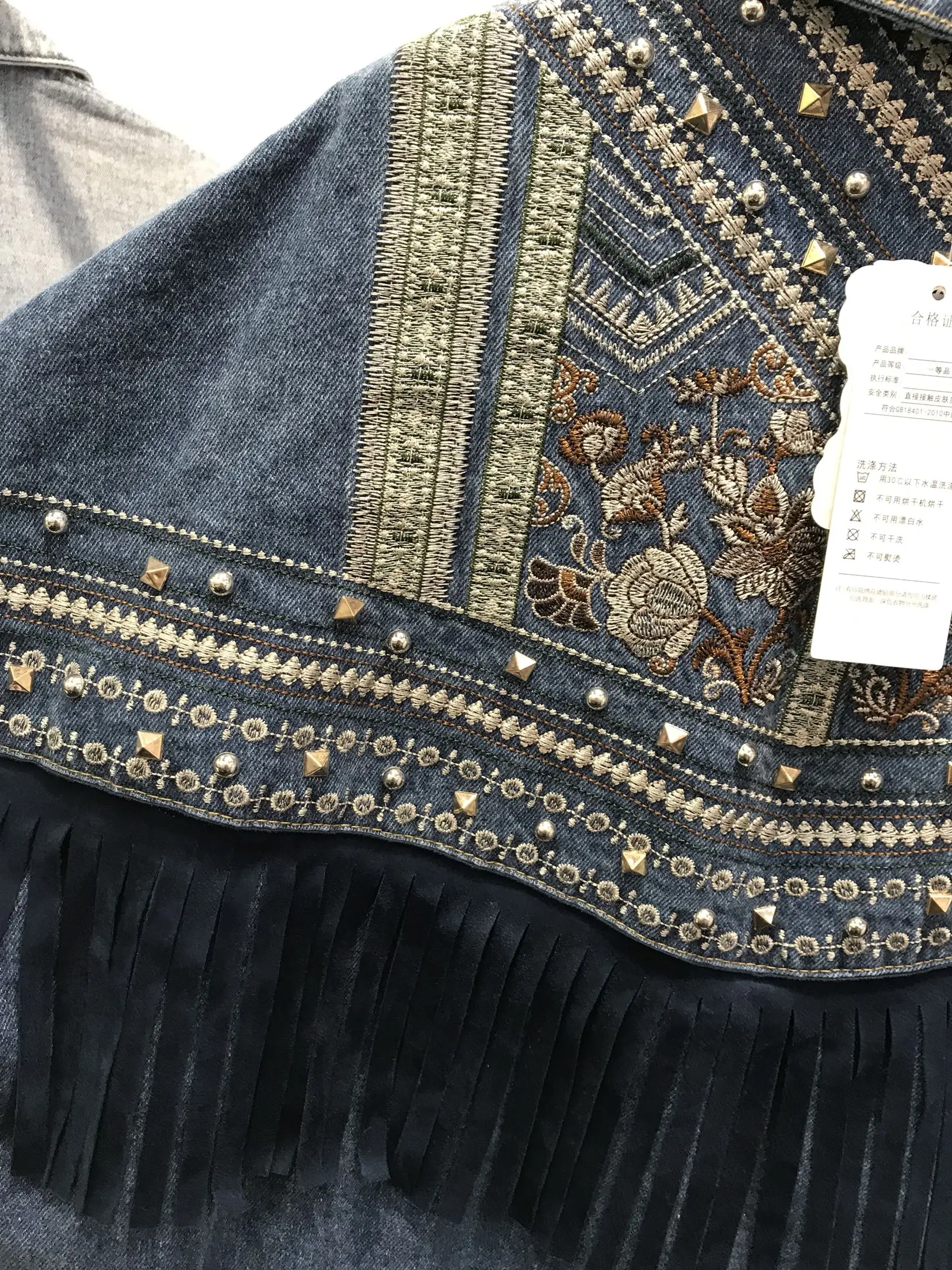 Женская джинсовая куртка ручной работы, с заклепками, кисточками и ...