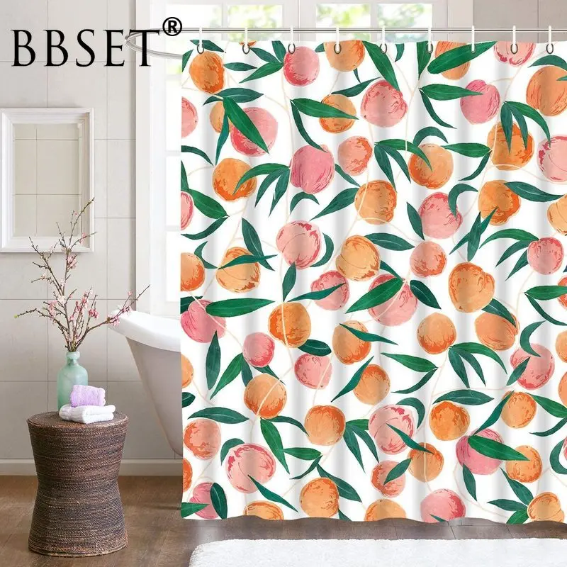 Высококачественная Водонепроницаемая занавеска для душа с мультяшным рисунком фруктов и персиков, многоразмерная занавеска для ванной комнаты с 12 крючками
