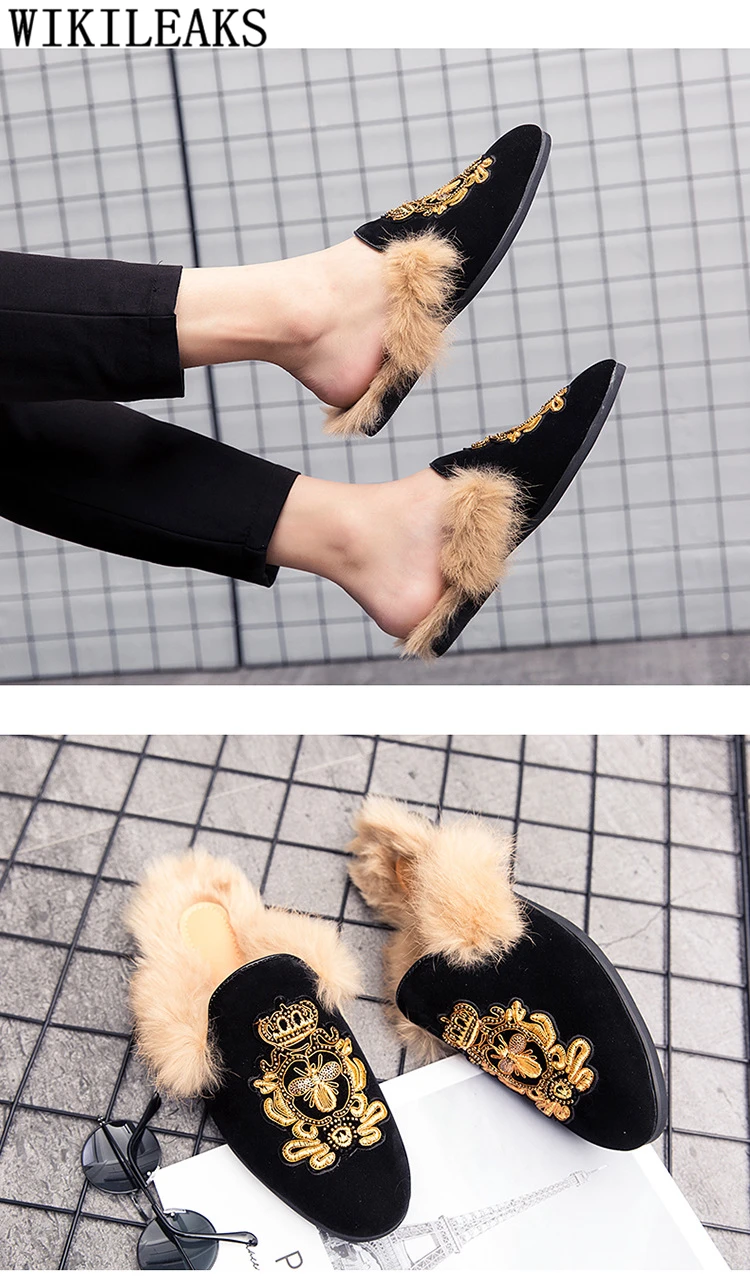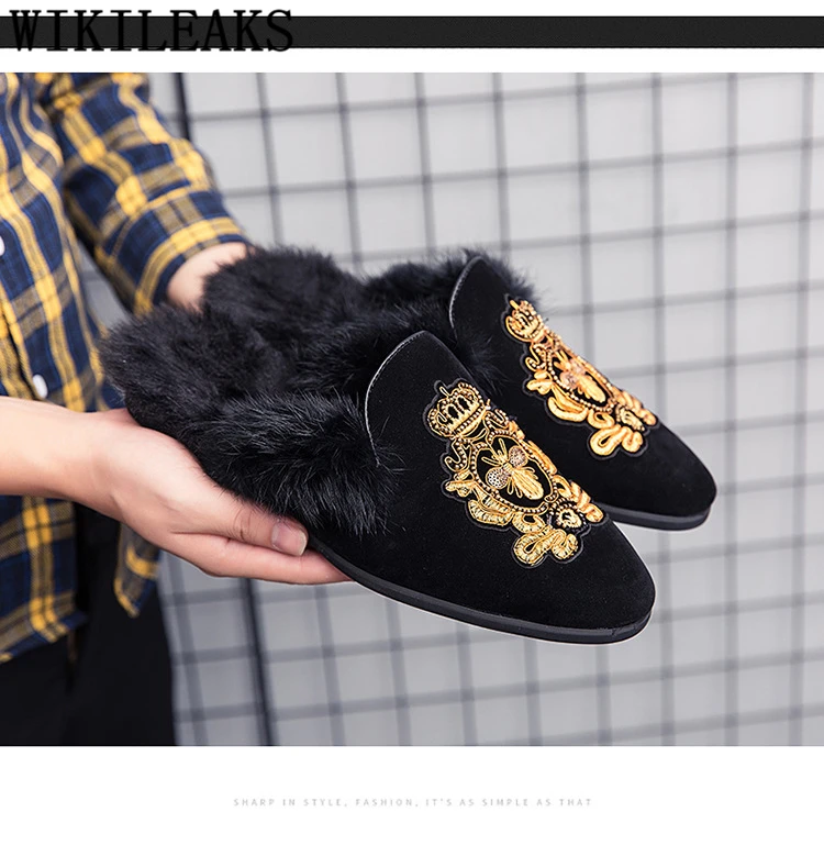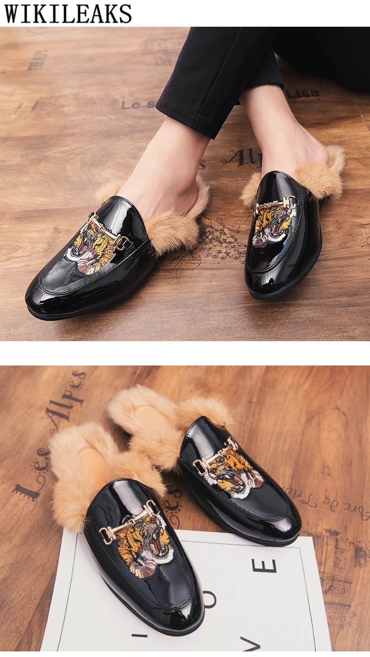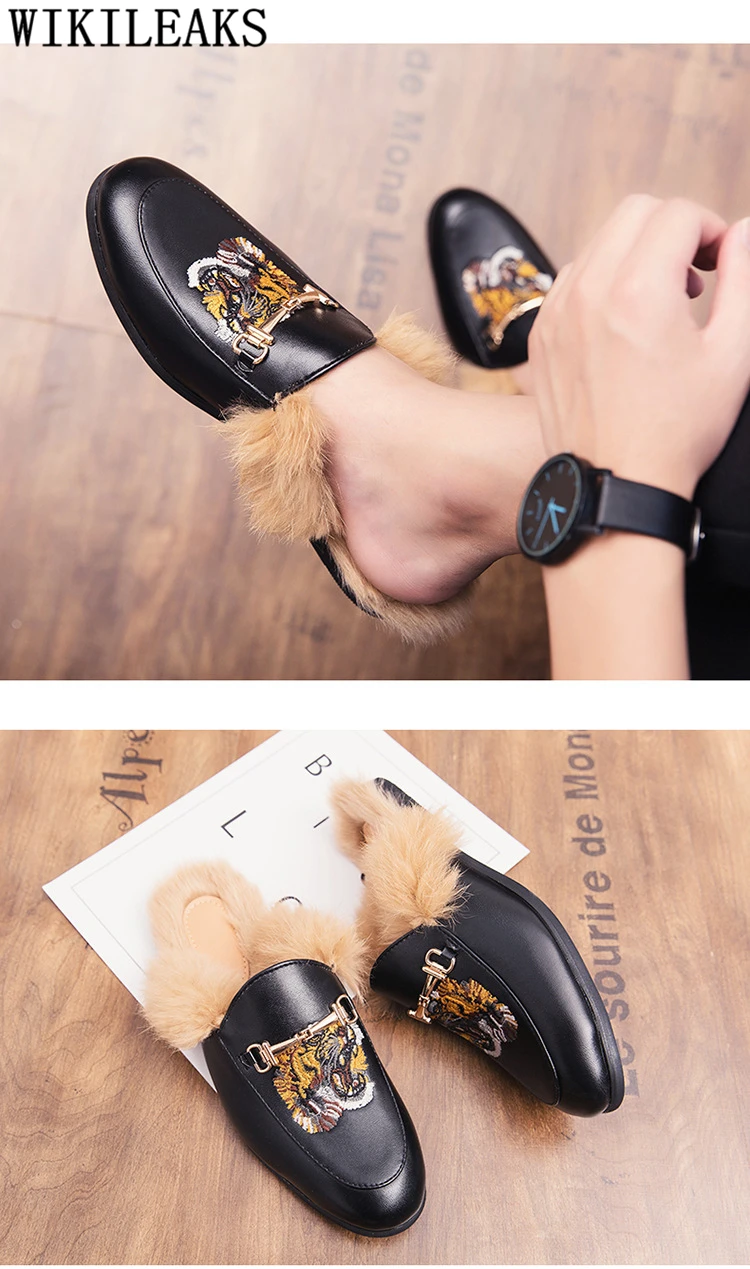 Мюли, полуботинки для мужчин, кожаные туфли с мехом, мужские черные...