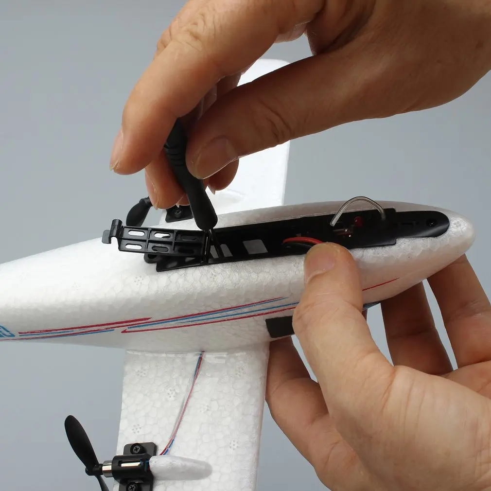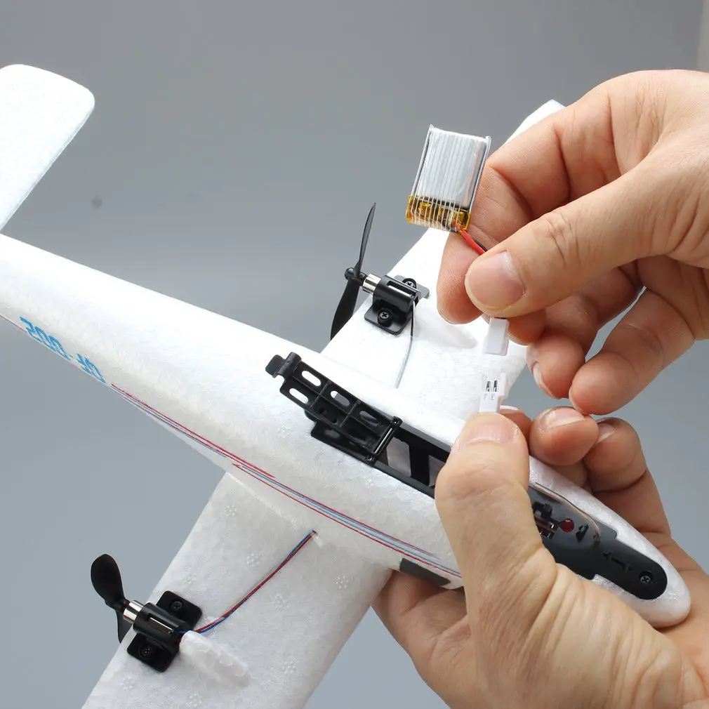 Посылка1 * корпус планера1 * пульт дистанционного управления1 * Руководство1 * литиевая батарея1 отвертка1 * USB-кабель для зарядки1 плата приемника1 * левый двигатель1 * правый двигатель1 * Пропеллер и реверс1 * шасси