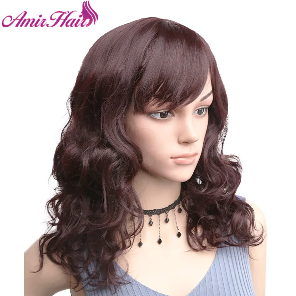 Парики женские синтетические средние волнистые с челкой, с естественным Бобом, с эффектом омбре, с темно-коричневыми и красными кудрявыми волосами для вечерние