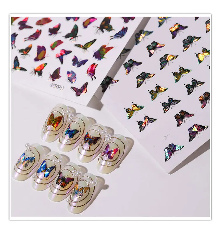 2020 Новинка! 3D лазерная фотография ногтей, милая Водонепроницаемая бабочка, смешанный дизайн, металлические жемчужные переводки, маникюрный дизайн