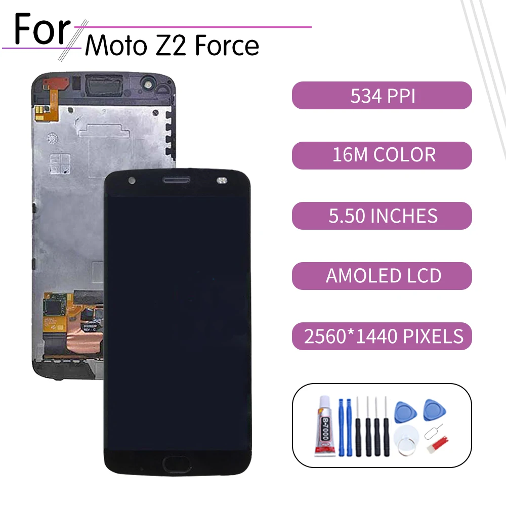 Оригинальный сенсорный ЖК-экран 5,5 дюйма для Motorola Moto Z2 Force, дигитайзер в сборе для Motorola Z2 Force, дисплей с заменой рамки