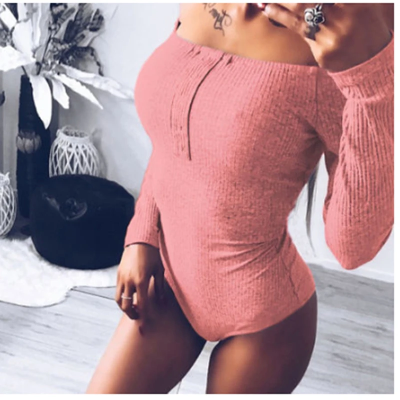 Вязаный женский комбинезон, модный сексуальный элегантный сексуальный теплый комбинезон с открытыми плечами, Однотонный женский комбинезон