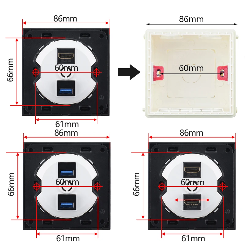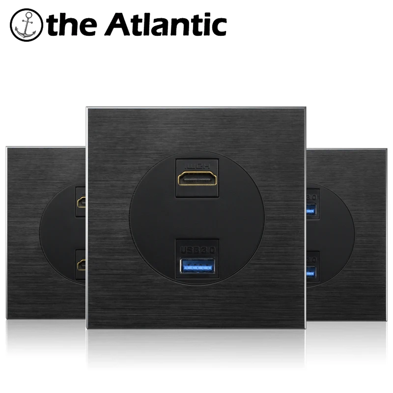 ТВ HDMI интерфейс USB 3,0 Data HDMI и USB-разъем для передачи данных, настенная розетка для компьютера, телевизора, алюминиевый черный разъем 86 мм