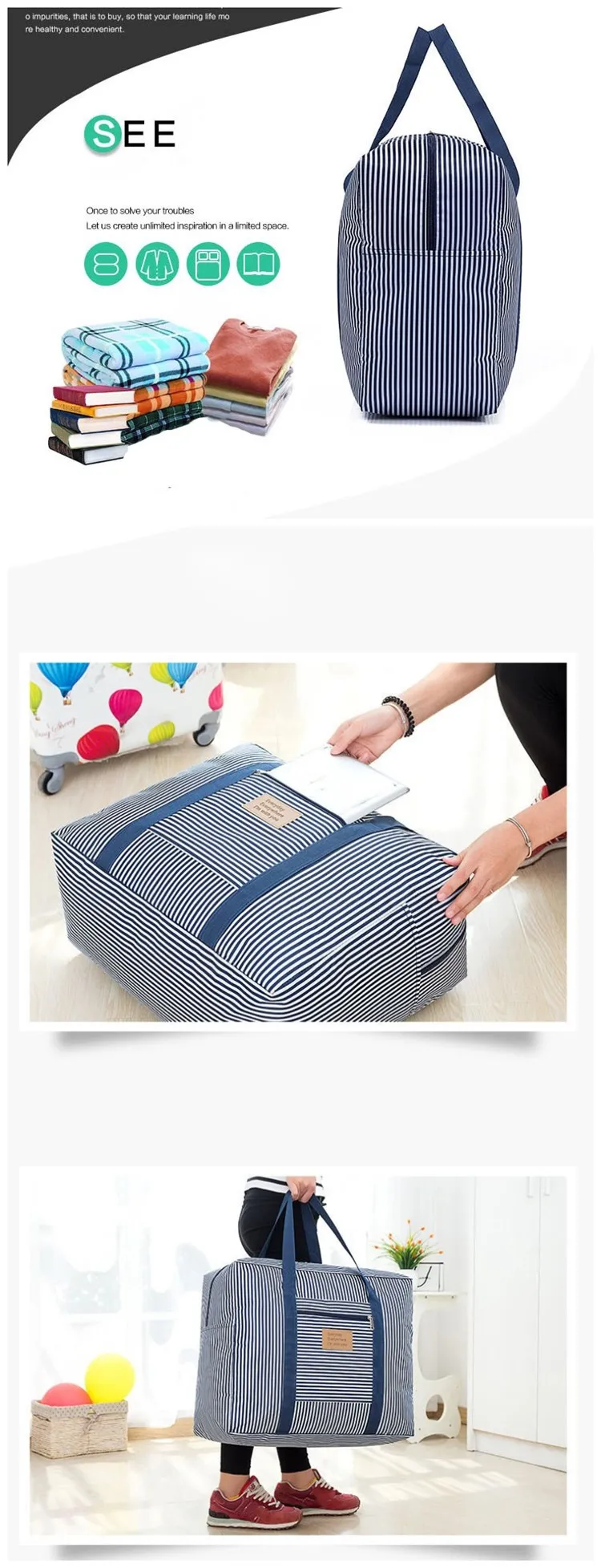 Полосатый узор путешествия чемодан Сумка Для Хранения Одежды Органайзер сумка на молнии большой Ёмкость отделка одеяла сумка-Органайзер Ящик