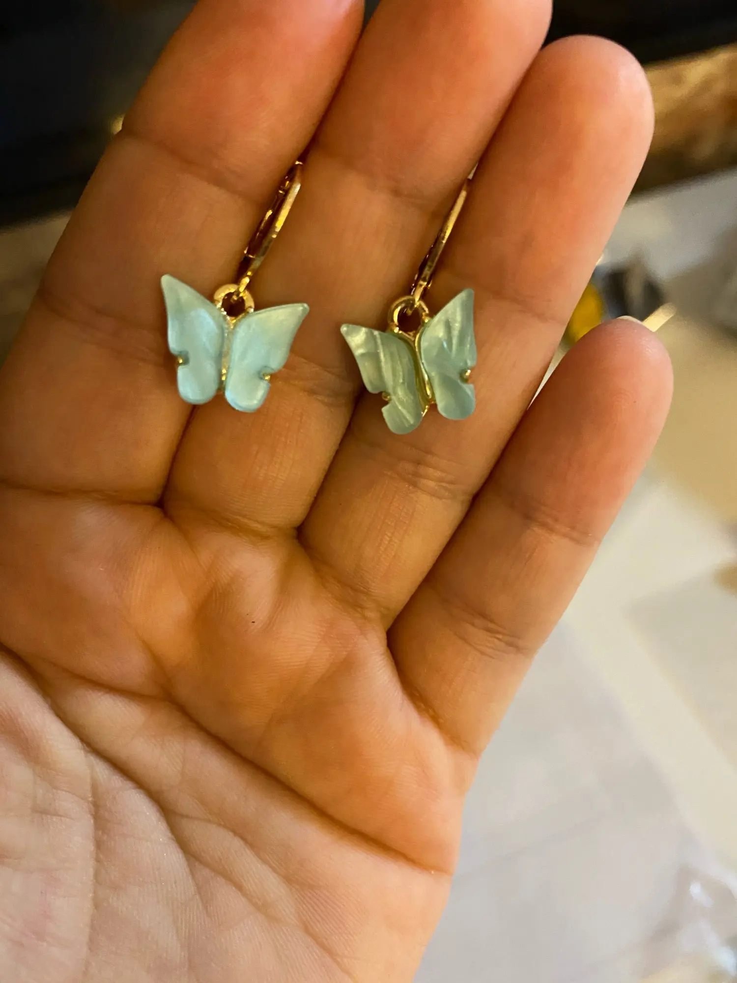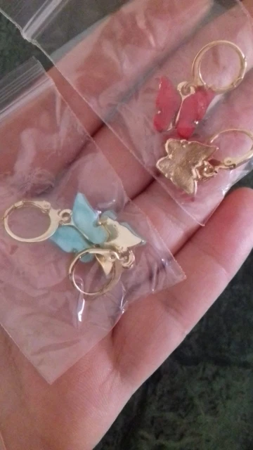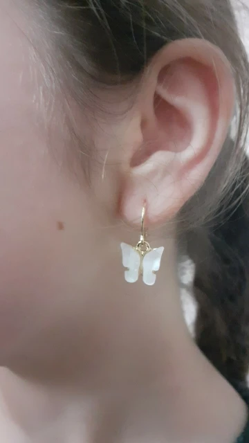 kolczyki są zgodne z opisem. motylki są bardzo ładne. zapięcie jest dość delikatne i łatwo je wyciąć lub złamać. jednak jak za ta cenę nie ma za bardzo co narzekać. córka jest bardzo zadowolona.
