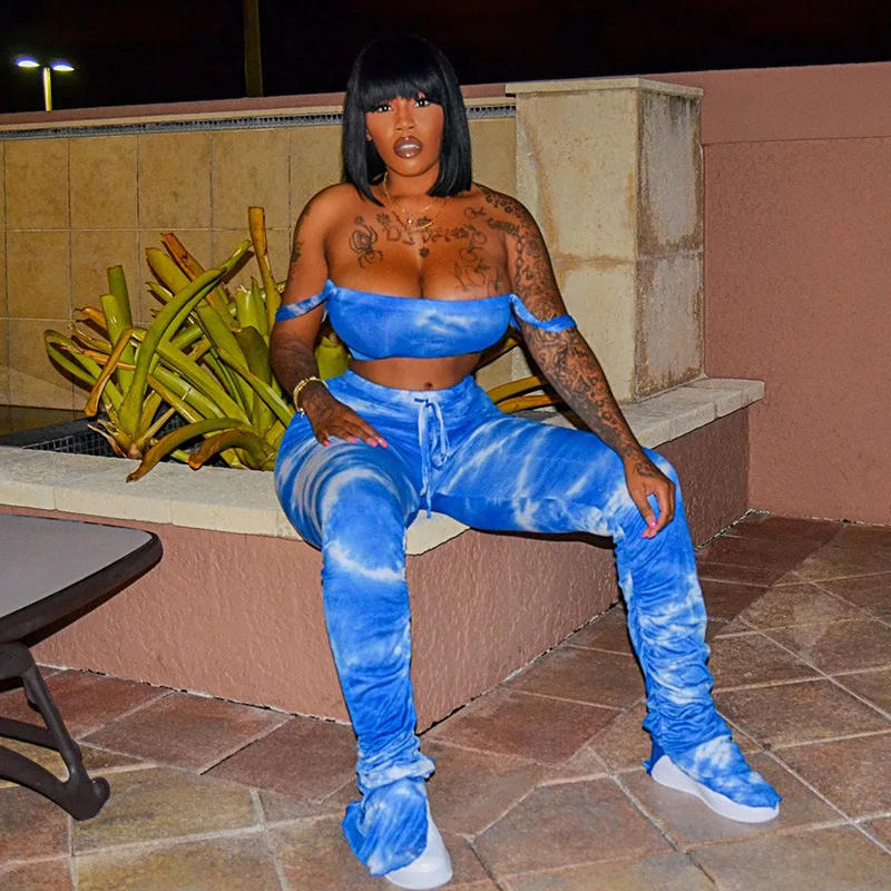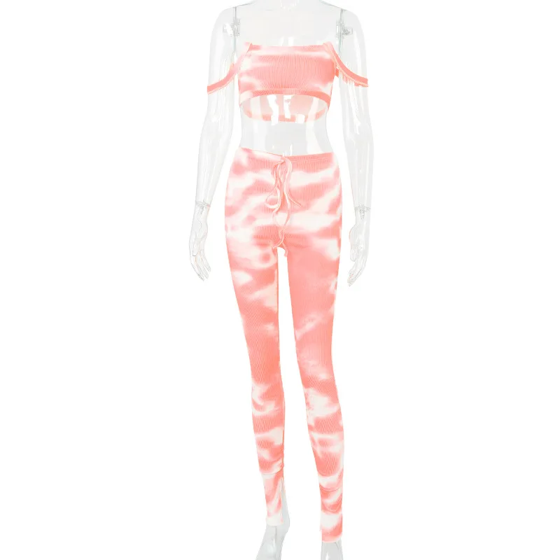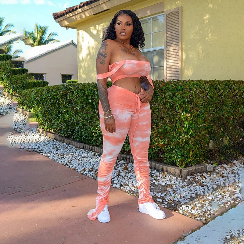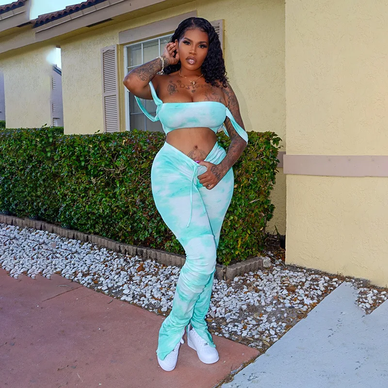 Женский комплект из 2 предметов, повседневный укороченный топ с принтом на завязках и Многослойные брюки, уличная мода 2020
